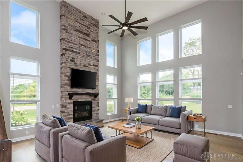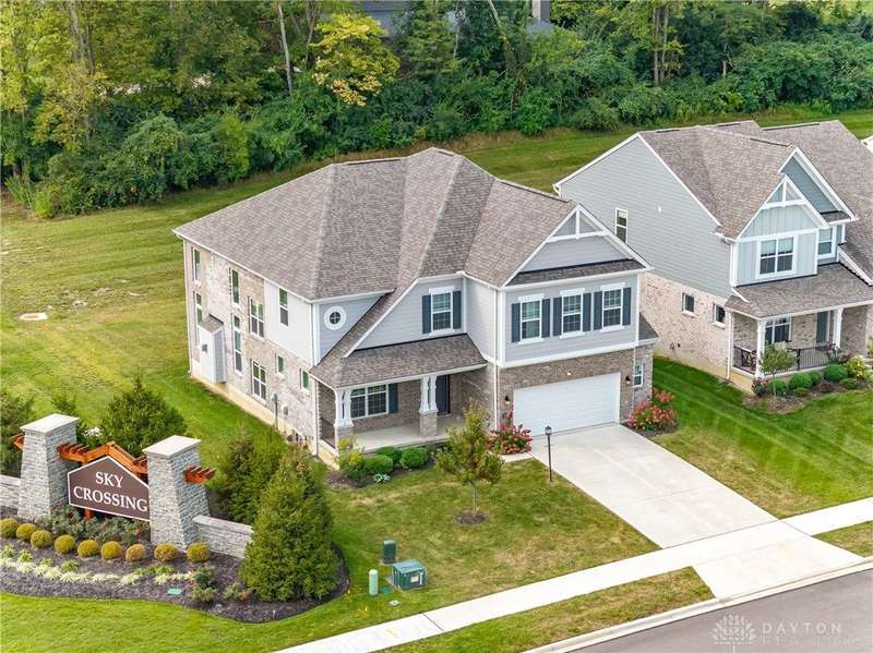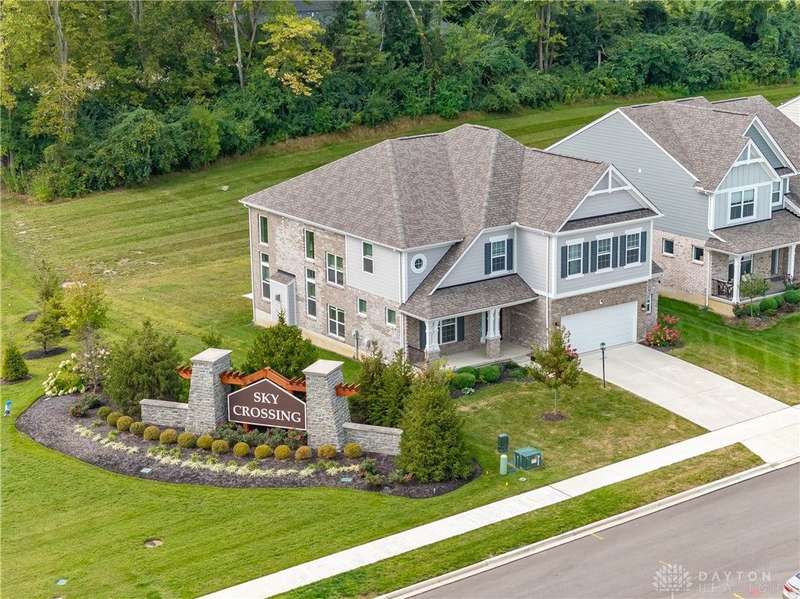 Welcome to 2721 Sky Crossing. Built in 2022 by MI Homes, offering 4 bedrooms, 3.5 bathrooms, and over 3,100 square feet of living space not including the full unfinished basement. Enter the home you are amazed at the open concept living room, high cathedral ceilings with bay windows and a floor to ceiling brick fireplace. The kitchen is anyone's dream. Featuring a large island, quartz countertops, double oven, gas stove, large walk in pantry, two additional pantries, and a dining area to enjoy morning breakfast and family dinners. Off of the kitchen is a 1/2 bath, laundry room for convenience, mud room with custom built ins, and oversized 2 car garage with storage. Upstairs you will find all 4 bedrooms, including the master suite with walk in tiled shower, dual sinks, and large walk in closet. One of the bedrooms also has full bathroom. The unfinished basement offers an additional 1,500 square feet and features an egress window. Spend fall nights on the back patio overlooking the back yard. Located in Beavercreek school district and a short drive to shopping, dining, and much more. Don't miss out on your dream home!