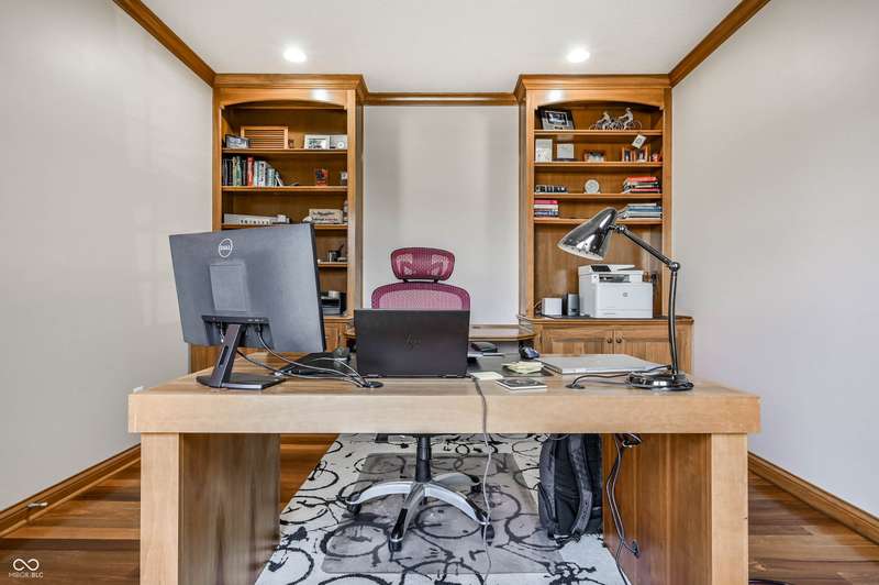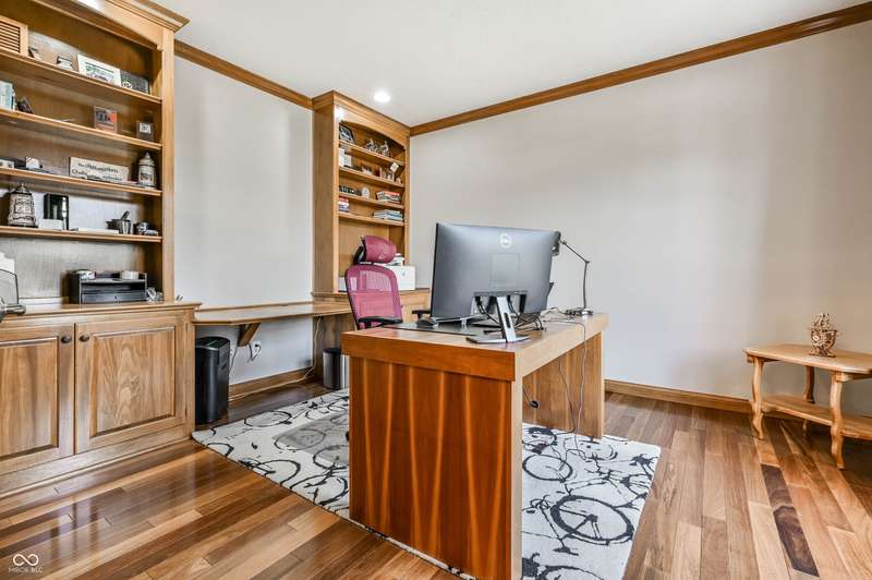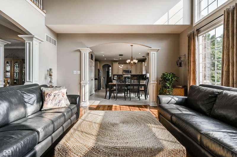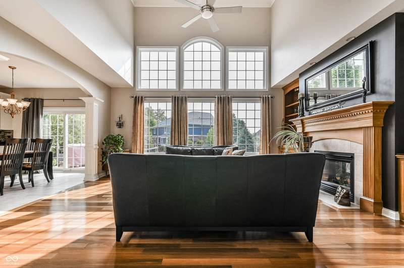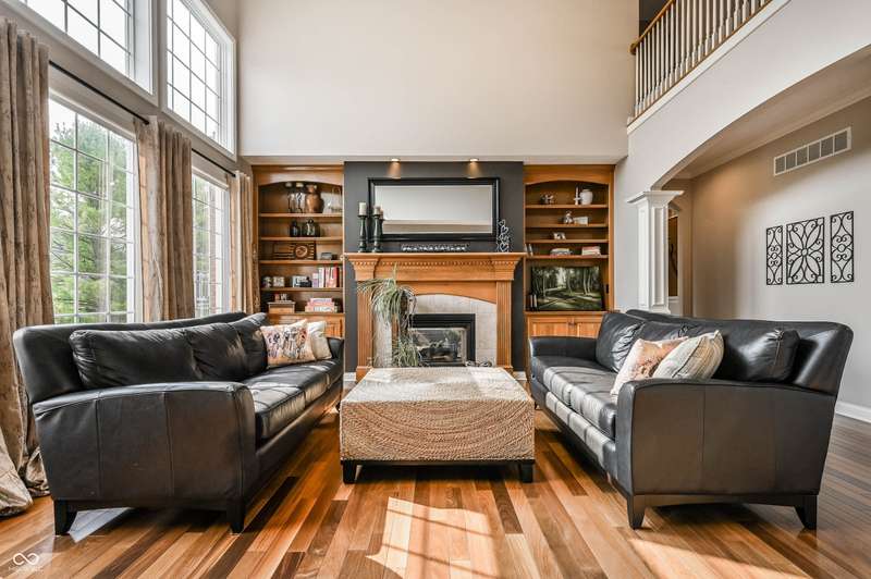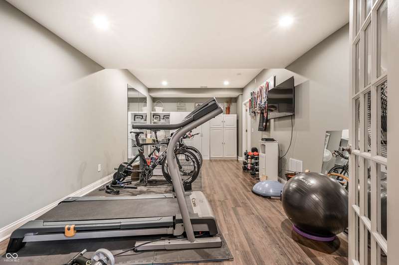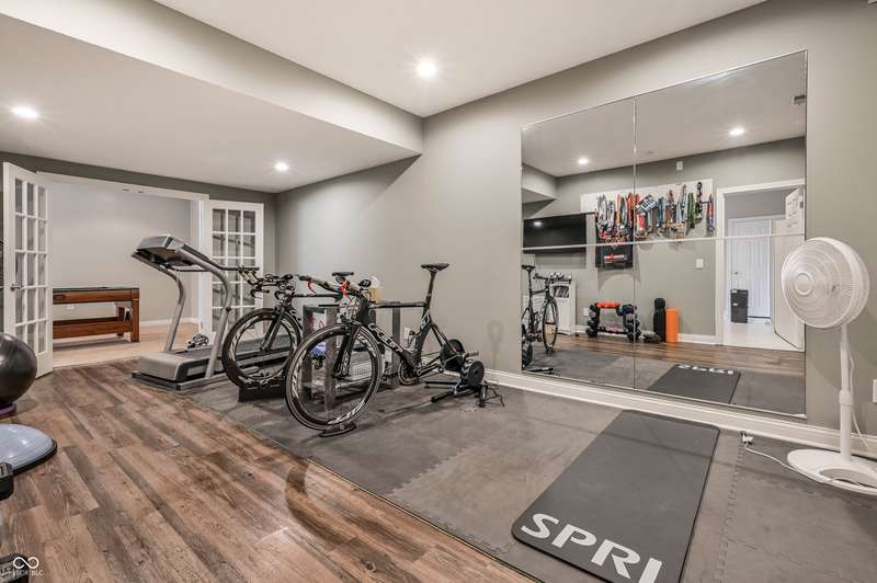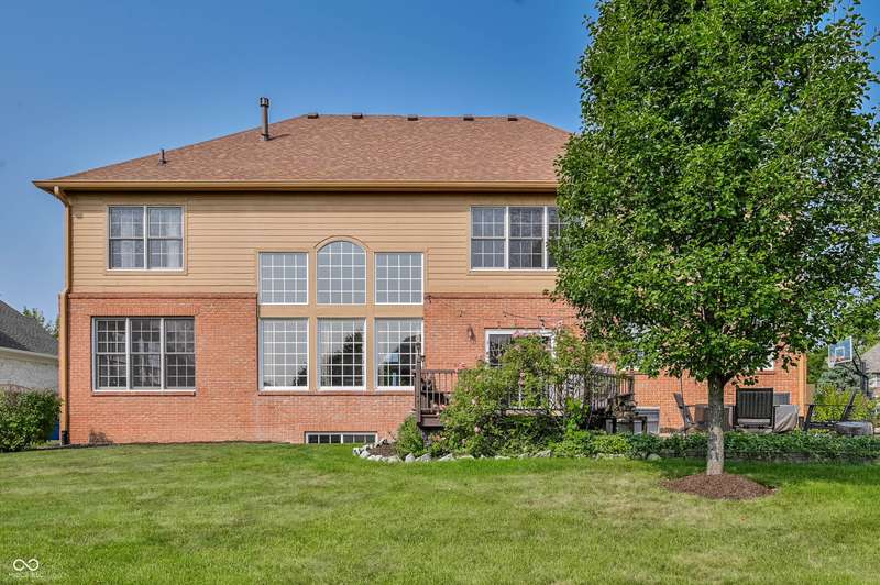 Nestled in the desirable community of Brooks Landing in Fishers, this home offers beautiful custom details inside and out, a blend of enduring quality and contemporary design. Neighborhood is in an ideal location, close to biking trails, parks, and walking distance to Geist Reservoir to enjoy an abundance of water activities. With approx 5000 square feet of living area, the interior provides an inviting atmosphere with stunning 2 story entry, formal dining room; soaring ceilings, an abundance of windows inviting wonderful light all year round. Private den with french doors & built-ins offers a perfect home office or quiet workspace, sunroom is adjacent to great room, each sharing a cozy fireplace. Updated kitchen offers warm creamy cabinetry, granite tops, breakfast bar & loads of storage. Upper level boasts 4 generous sized bedrooms, excellent closet space & huge bonus room ideal for kids play or additional family gatherings! Retreat to the finished basement, complete with TV area, billiards area and professional workout room with storage units; half bath(plumbed for full) and custom bar with bar sink. Spacious 3-car garage with built-in storage cubbies for convenient storage. Enjoy your private backyard oasis, with lush landscaping, custom deck and paver patio will be an ideal place to enjoy family gatherings and morning coffee.