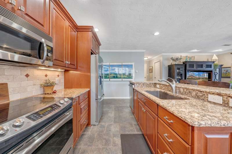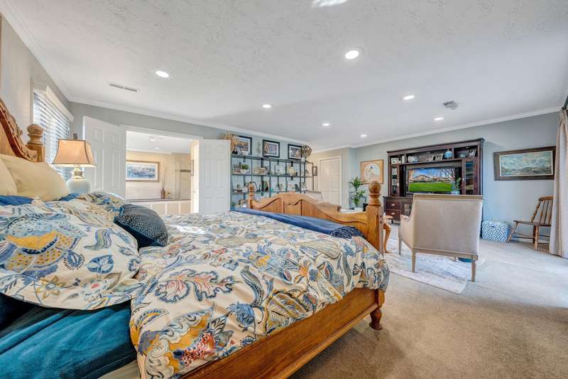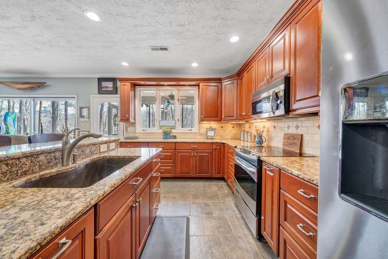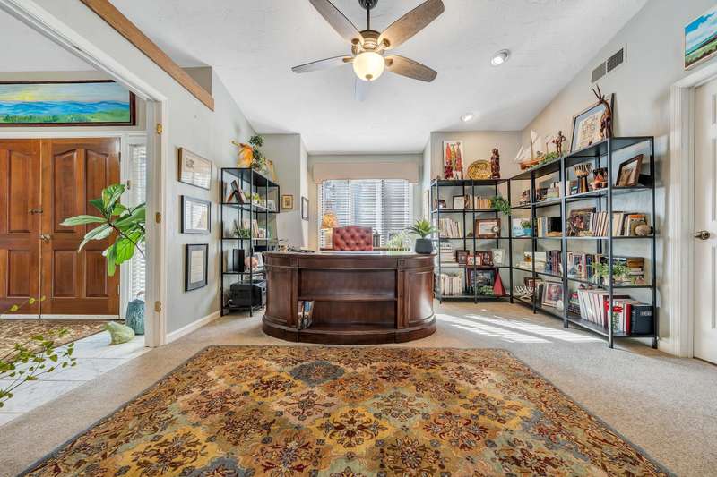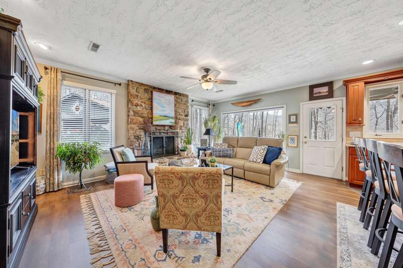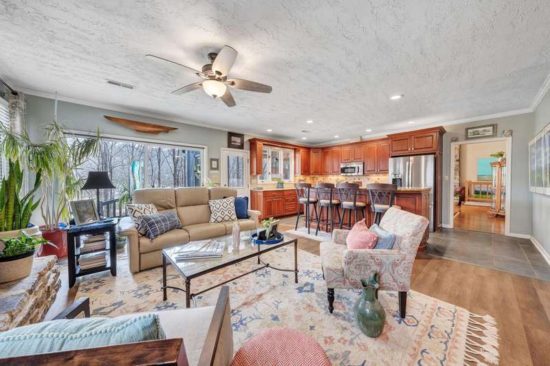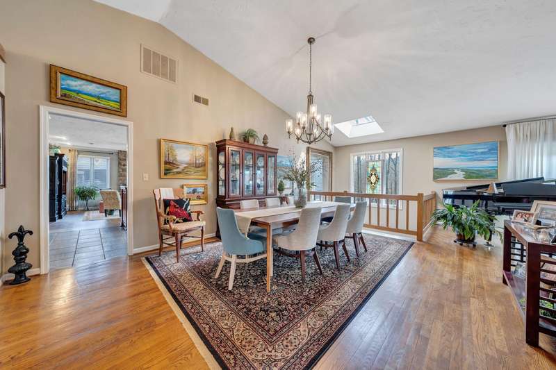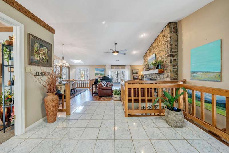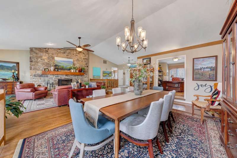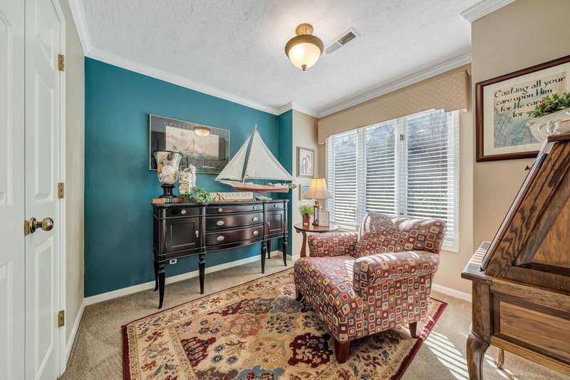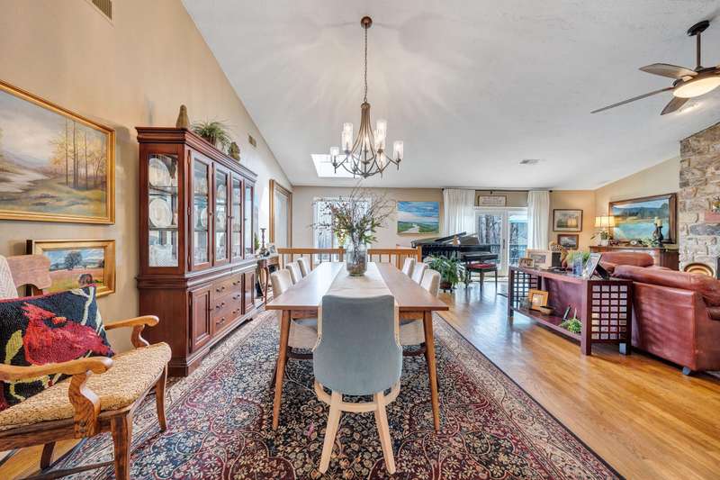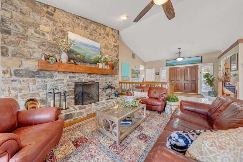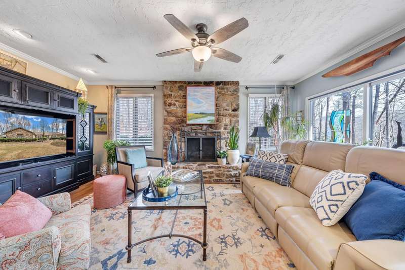 Located in the desirable Hunting Hills community, this beautifully ranch offers classic charm paired with picturesque golf course views. Boasting 3 generously sized bedrooms, 3 full bathrooms, and 3 masonry fireplaces, the home blends graceful living with modern comforts. The open layout features inviting living spaces designed for both casual living and elegant entertaining, while the high-end kitchen flows effortlessly into the dining and gathering areas perfect for hosting family and friends. A dedicated office or optional fourth bedroom adds flexibility to suit your needs, whether for work, guests, or hobbies. Expansive windows and thoughtfully placed skylights fill the home with natural light, enhancing the sense of openness and tranquility throughout.