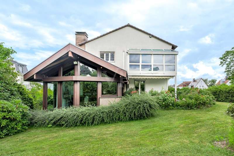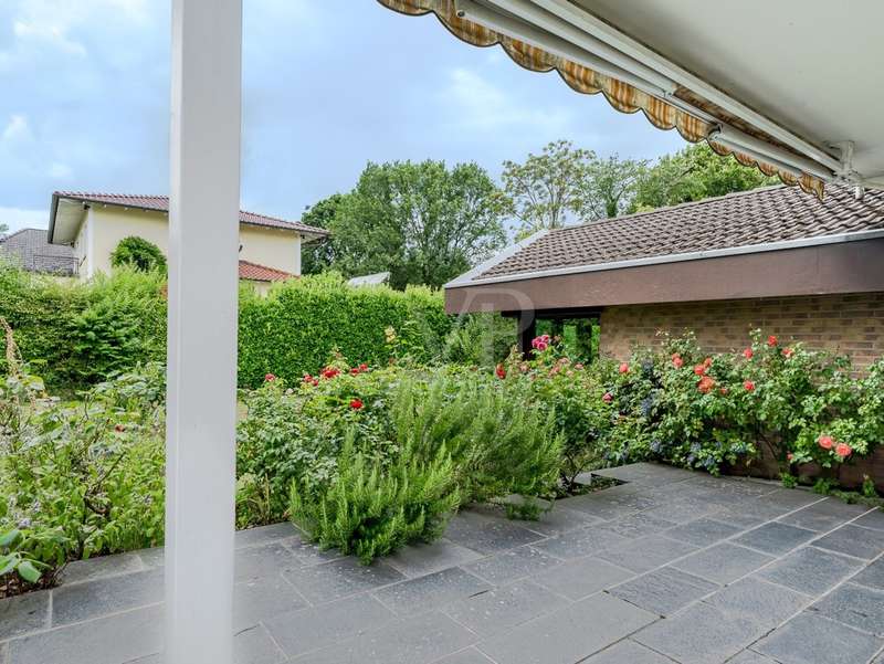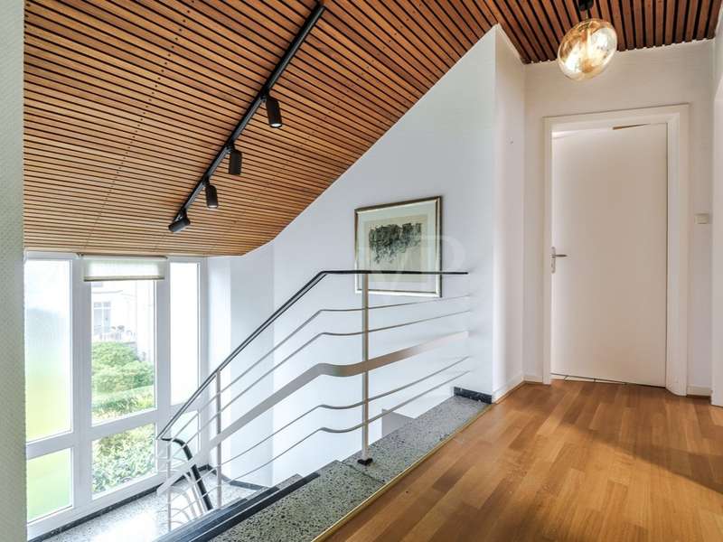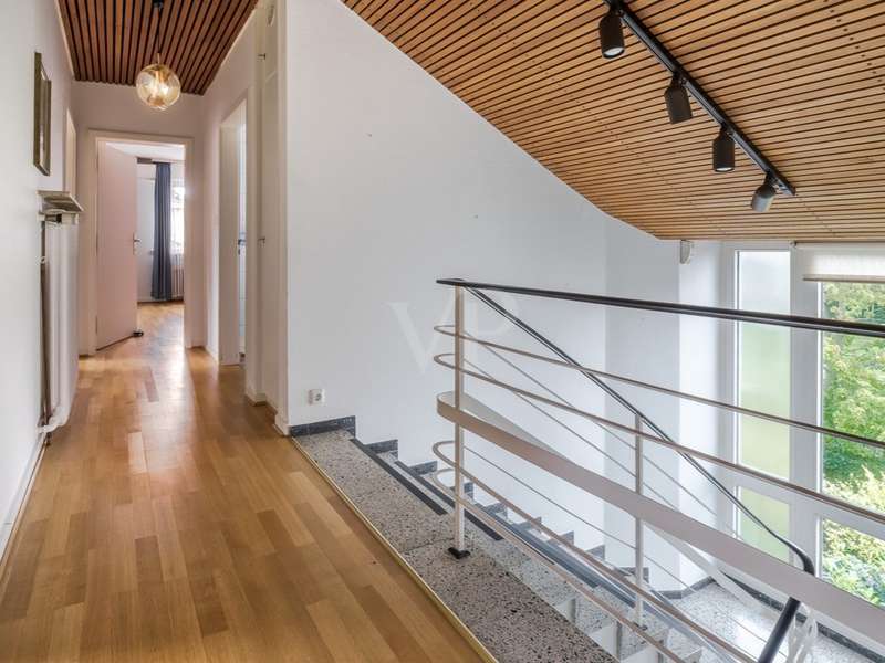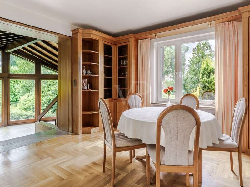 Plan your move to one of the most attractive locations in Oberursel. The villa district "An der Heide" stands for dignified living in stylish surroundings. This generously proportioned detached house from 1961, extended by a successful extension in the late 1970s, offers ideal conditions for families or couples in need of space with a living area of approx. 213 m² and a plot area of approx. 878 m². The property impresses with its high-quality furnishings, but is currently in need of renovation and opens up a wide range of design options to suit individual requirements. The entrance area of the house welcomes you with a high-quality natural stone floor and leads directly to the first floor, which impresses with its well thought-out room layout and light-flooded rooms. There are two separate guest toilets as well as a spacious living/dining area with elegant parquet flooring. The adjoining fireplace lounge with open fireplace and natural stone cladding creates an atmosphere for relaxing evenings. Floor-to-ceiling window elements ensure a pleasant amount of light and provide access to the spacious terrace, which invites you to spend time together outdoors. A balcony in front of the kitchen further extends the living area. Particularly practical: direct access from the garage into the house makes everyday life much easier. The integrated air conditioning system ensures comfort on warm days. There are a total of four spacious rooms on the upper floor, including three bedrooms and a guest room/home office. The conservatory, accessible from two rooms, offers a variety of options for individual use. Two daylight bathrooms - one with a shower, one with a bathtub - ensure functional processes and comfort for the whole family. The attic offers a spacious loft. The conversion must be agreed with the building authorities. Two storage cellars await you in the basement, offering plenty of storage space. A separate sauna area invites you to relax, while a utility room makes organization easier. The house is equipped with a modern Buderus heating system, The landscaped grounds offer plenty of privacy and a place to retreat. With a garage, direct access to the house and a secluded sun terrace, the main focus is clearly on suitability for everyday use. This detached house combines spaciousness, a flexible floor plan and high-quality fixtures and fittings. As it is in need of renovation, buyers have the opportunity to design the property according to their own needs and ideas. Take a look for yourself at the possibilities offered by this house and arrange a viewing.