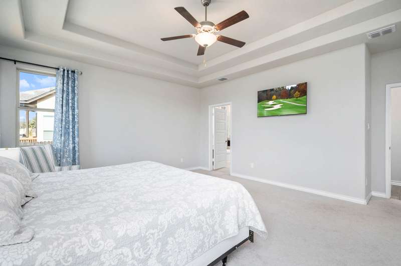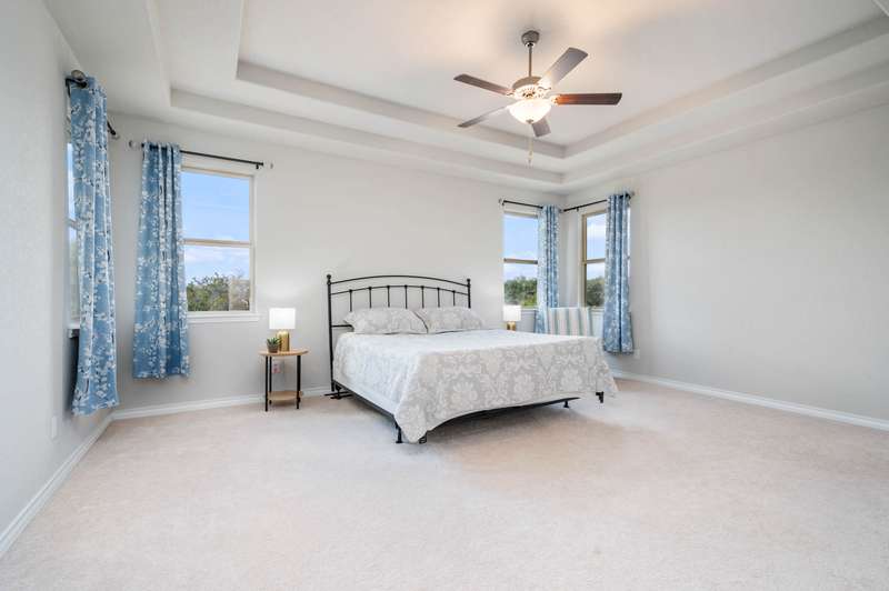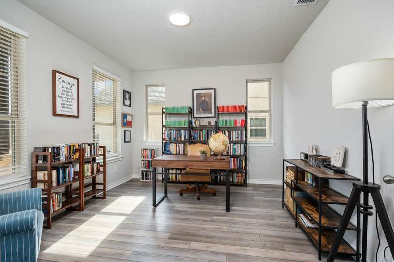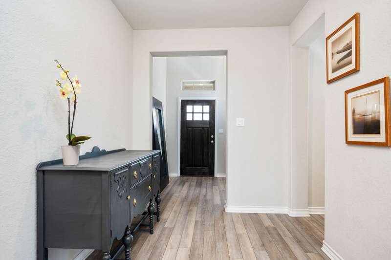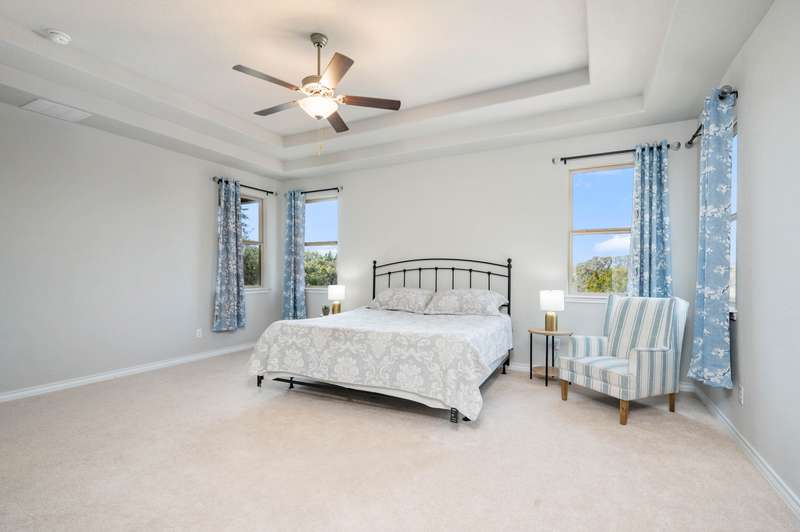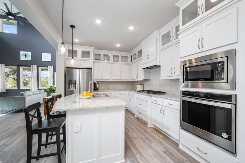 This Bulverde residence frames luminous interiors with clean architectural lines set within the top rated Smithson Valley school district, home of the 2024 State Football Champions. Clerestory windows and wrought iron balusters lend character to the interiors, complemented by recessed lighting and a balanced mix of formal and informal spaces. A private study anchors the main level, while upstairs a generous game room expands the home's versatility. The island kitchen is outfitted with gas cooking, glass-front cabinetry and pendant lighting, combining function with refined detail. The home extends outside to a covered patio, ideal for gatherings or quiet evenings. - 11/7/2025 8:16:03 PM