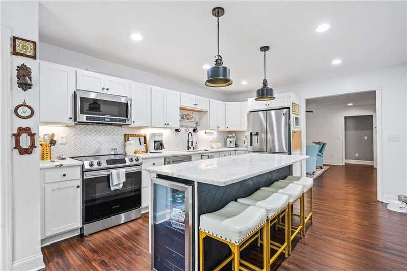 The Perfect Ranch Home with Room to Roam - Over 2 Acres & Fully Finished Basement! Welcome to your dream home! This beautifully designed ranch-style residence offers the ideal floorplan, combining comfort, function, and privacy-all set on over 2 acres of serene, landscaped land with privacy from neighbors. With 3,400 square feet of finished space, this turnkey home has it all. The main level features 3 spacious bedrooms and 2.5 baths, including a luxurious primary suite with a soaking tub, double vanity sinks, and elegant finishes. The heart of the home is the gorgeous kitchen-featuring a large island, stone countertops, white cabinetry, and stainless-steel appliances. A large walk-in pantry and an adjacent laundry room with a custom tiled dog washing station add practical luxury. Flowing seamlessly from the kitchen is an open-concept dining area with a view into the inviting living room, ideal for gatherings with family and friends. Downstairs, the fully finished basement offers endless opportunities for entertainment and relaxation-complete with a theater room, game room, home gym, and a flex room that can serve as an office or extra bedroom. Recent upgrades include fresh interior paint, modern lighting fixtures, and cleared acreage in the rear, making the outdoor space just as appealing as the interior. The property offers both privacy and beauty, with plenty of room for outdoor living or future additions. This home is immaculately maintained and truly move-in ready-schedule your private showing today and make this incredible property your forever home!