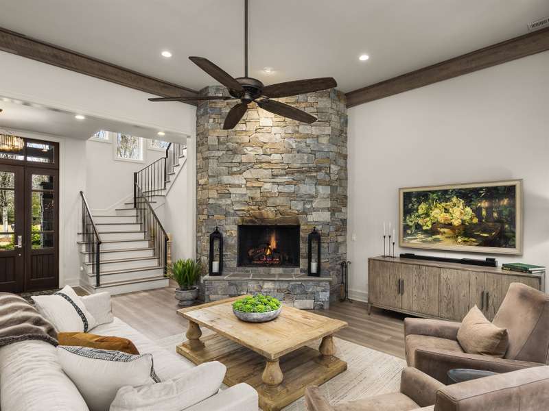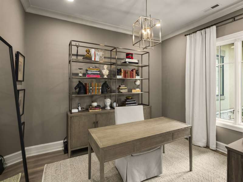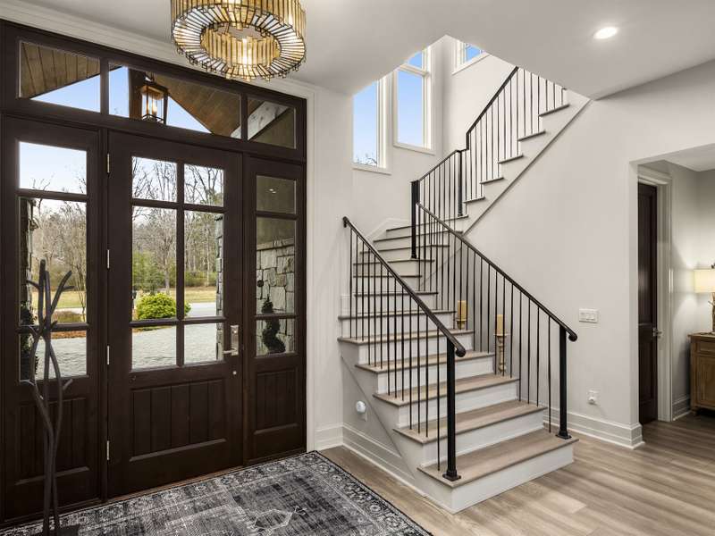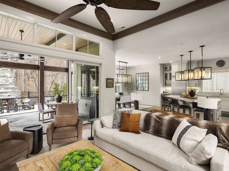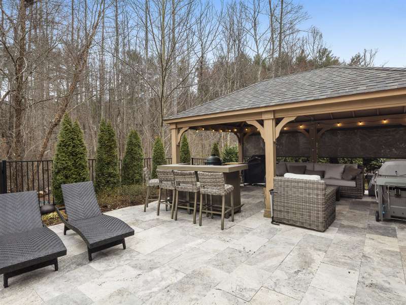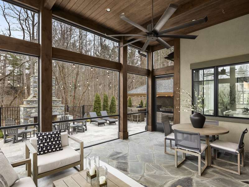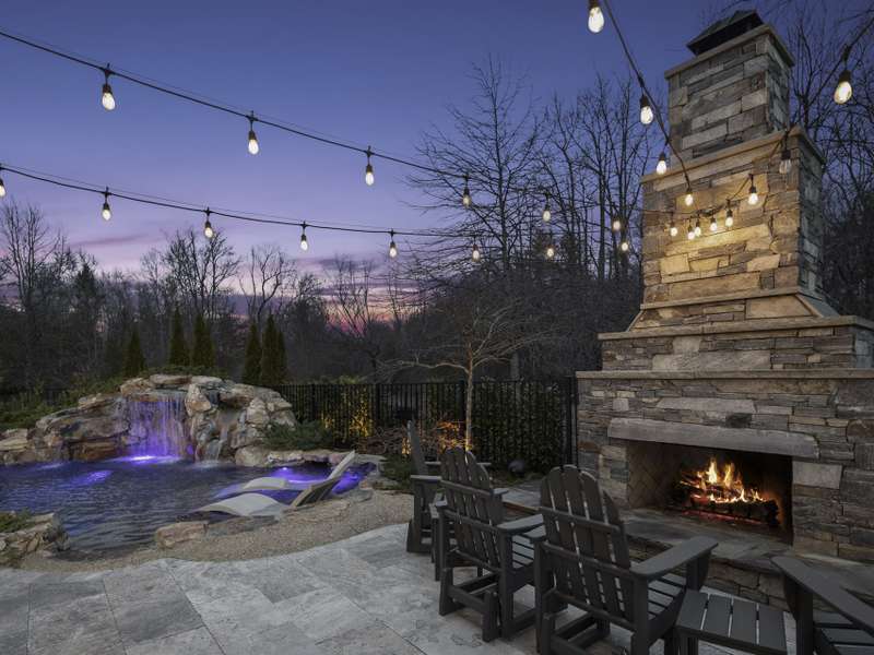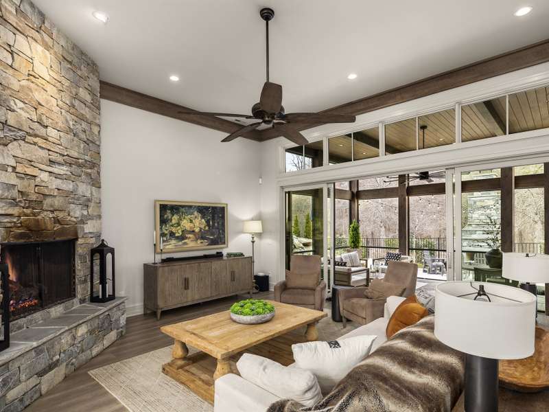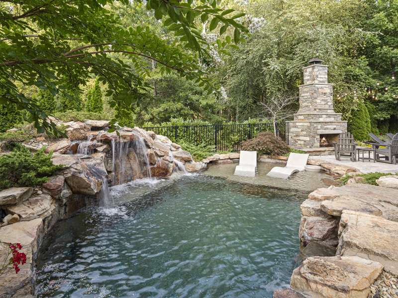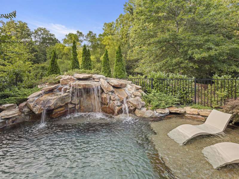 Enjoy easy indoor/outdoor living in this spa-like retreat in the coveted Cove Park enclave of The Cliffs at Walnut Cove. Centered around a striking Taj Mahal leathered quartz island, the open layout connects the kitchen, dining, and living areas, all bathed in natural light. A home office sits off the entry, and the main-level primary suite offers peaceful luxury. Upstairs are two ensuite bedrooms, a spacious den, and generous storage. Step through the screened porch into a private, landscaped oasis featuring a lagoon-style saltwater pool crafted from Tennessee fieldstone, with a waterfall and self-cleaning system. A stone fireplace and wooden pavilion offer year-round comfort and entertaining. The gated yard backs to protected greenspace and showcases low-maintenance perennials and ornamental trees for four-season beauty. With a neutral palette and timeless finishes, this home is a serene canvas for your personal style.