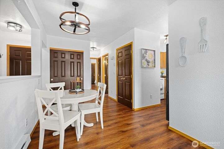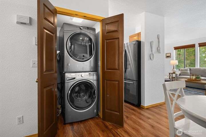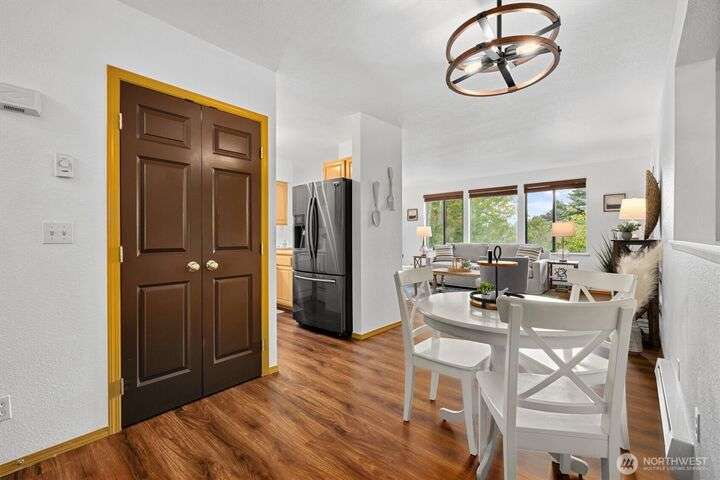 Beautiful top floor 2 bedroom/1 bath condo in a gorgeous historic brick building on a quiet tree-lined street! New luxury vinyl plank flooring throughout, new light fixtures & new interior paint. Living room has large windows that flood the space w/natural light. Kitchen opens to eating area & living room. Deck off the back. Lots of storage inside the unit plus an additional storage unit below. Newer in-unit full-size washer/dryer & SS refrigerator. Reserved parking space. Minutes to I5/Hwy2. The revitalized Everett waterfront with restaurants, hotel, & marina is minutes away. Moments away from Providence hospital, Everett Naval Station, Everett Community College & Garfield Park. Move-in Ready!