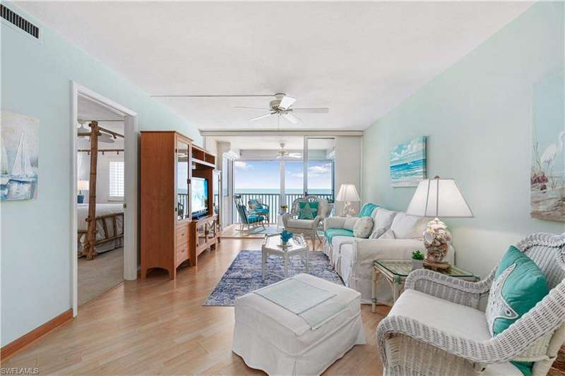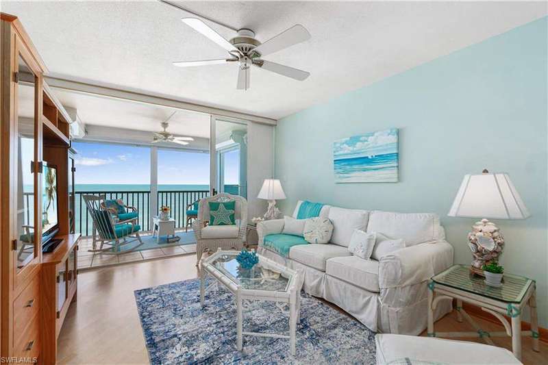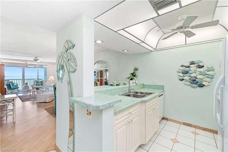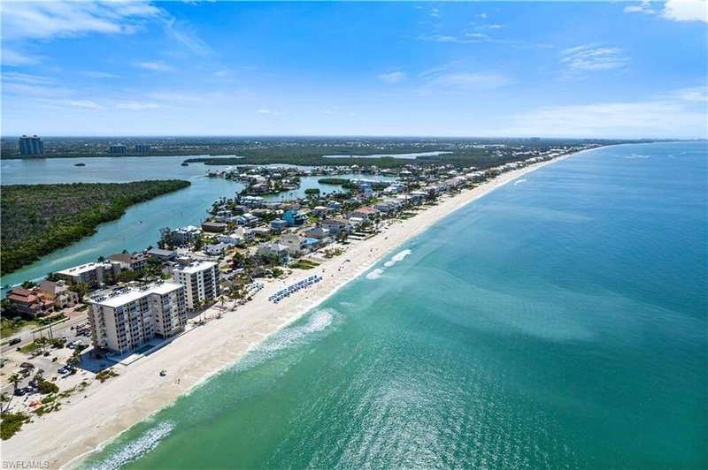 BEAUTIFUL BEACHFRONT UNIT WITH SPECTACULAR GULF VIEWS ON BONITA BEACH! Delight in panoramic Gulf views down the coast to Naples & up to Sanibel. This updated & meticulously maintained condo features an open floor plan, 2 beds/2 baths, NEW HVAC, 2024 HOT WATER HEATER, electric + manual shutters & has a BRAND-NEW ROOF on the building! This coastal-inspired unit was designed & decorated to reflect the sea-glass colors of the paradise that surrounds. Relax & unwind on your screened-in lanai, while enjoying boats sail by, dolphin & manatee enjoying the Gulf waters, spectacular sunsets & even the Sanibel Lighthouse in the far distance! Light & bright kitchen features white cabinetry, new dishwasher & ample storage. Other features include a dry bar with room for a wine fridge, spacious laundry room, updated bathrooms, beautiful Bay views from the guest bedroom & extra storage on the ground floor is being installed. Enjoy paradise with this perfect vacation home or as a rental income opportunity. As part of the building's new architectural design, the Egret will soon feature lushly landscaped tropical grounds with heated beachfront pool, community room with full kitchen/bathrooms, BBQ area and more. Renovations are rapidly progressing with newly installed mailboxes, a completed pool and pool deck, the building has been fully painted & the new lobby is almost completed! Perfect location steps to waterfront restaurants & fine shopping/dining at the Promenade, Mercato & Waterside Shops.