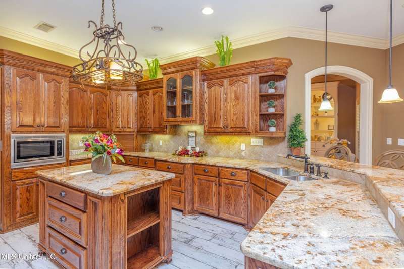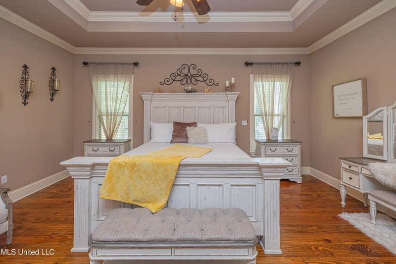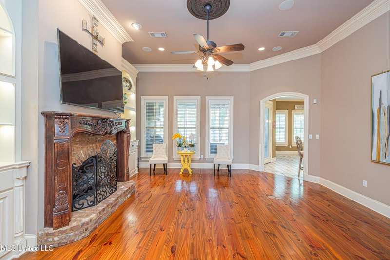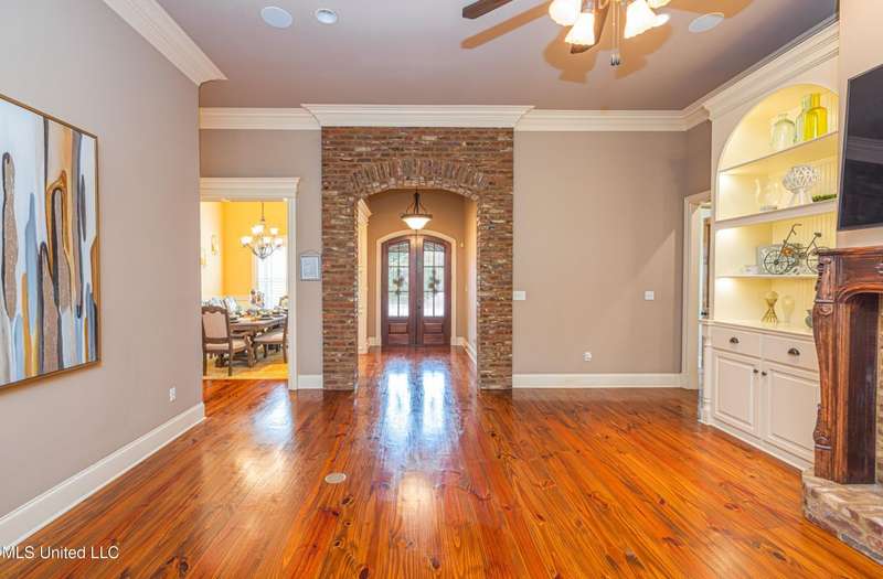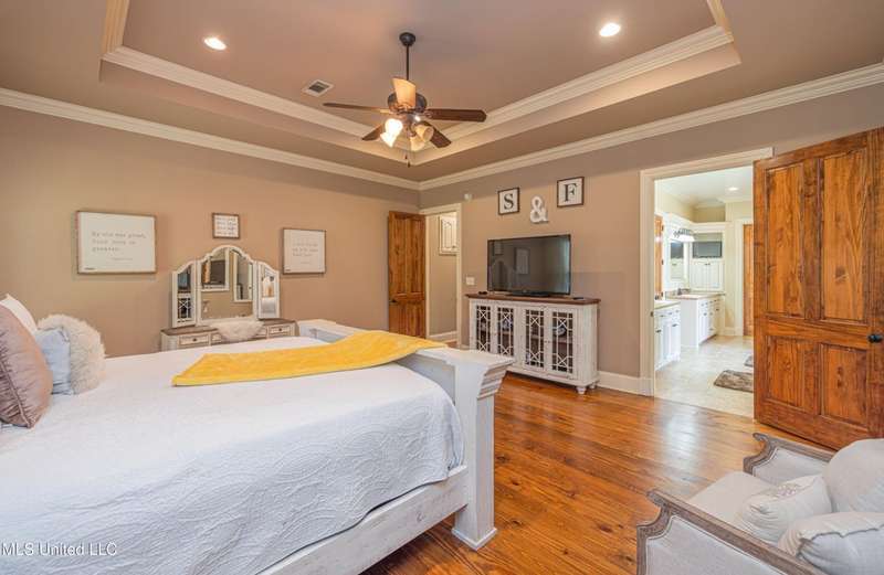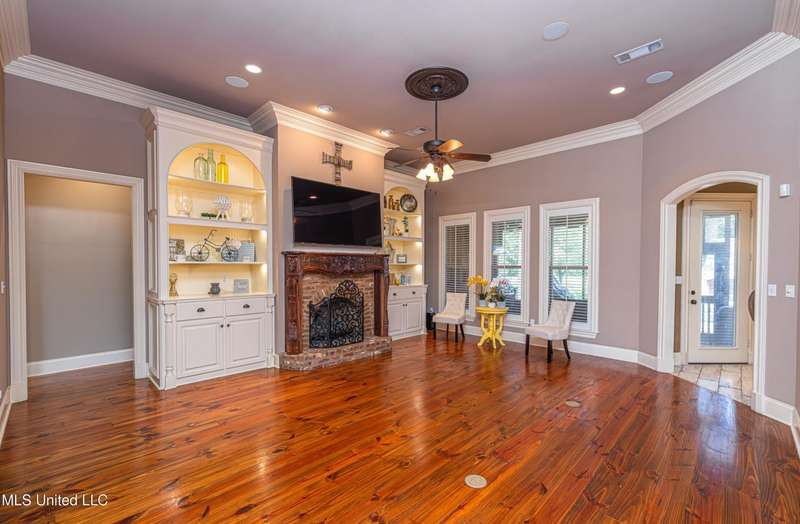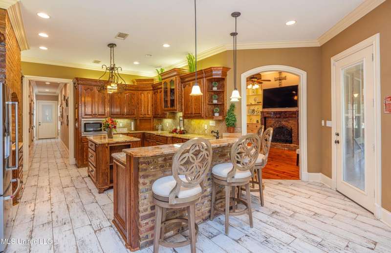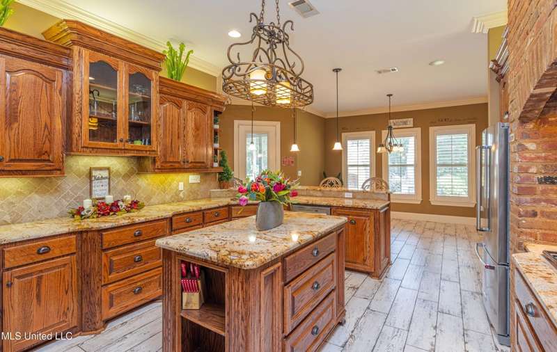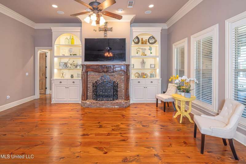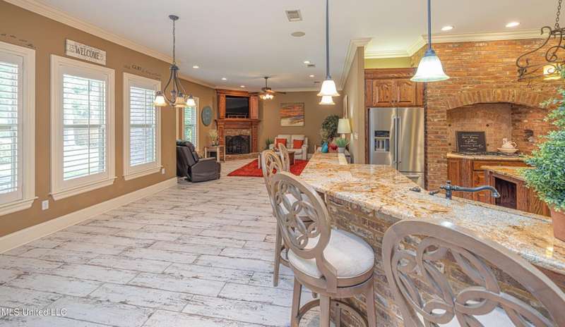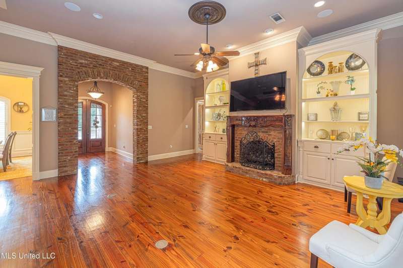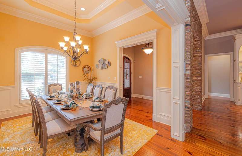 Bienvenue to timeless elegance! This exquisite French Acadian-style estate blends classic Southern charm with luxurious modern touches. Nestled on a beautifully landscaped lot, this 5-bedroom, 4-bathroom masterpiece welcomes you through a gracious foyer entry into over 4,000 square feet of inspired living space.The formal dining room sets the tone with a trey ceiling, rich wainscoting, and stunning wood floors that flow gracefully throughout the home. The chef's kiss kitchen is a culinary dream?custom cabinetry, porcelain tile flooring, KitchenAid double oven, gas cooktop, brick accents and a spacious keeping room with fireplace making it the perfect space to gather, entertain and unwind.Retreat to the spacious primary suite, where a trey ceiling adds elegant depth and the spa-like bath pampers with a fully tiled walk-in shower, soaking tub, double vanity, and a large closet outfitted with built-ins. Each guest bedroom is oversized with access to a full bath and abundant storage.Charming brick accents throughout and three cozy fireplaces create warmth and architectural interest throughout this property. Step outside to the screened-in patio featuring a outdoor kitchen and stone fireplace?the perfect place to relax and enjoy peaceful hours in the scenic backyard or entertain all yur friends and family.A 3-car garage, thoughtful storage solutions, a GenArc generator and timeless curb appeal make this home a rare gem. This is Southern living, elevated. Bella Vista subdivision is conveniently located to area entertainment and venues, interstate access, airport, shopping and schools. Call today to tour this property.