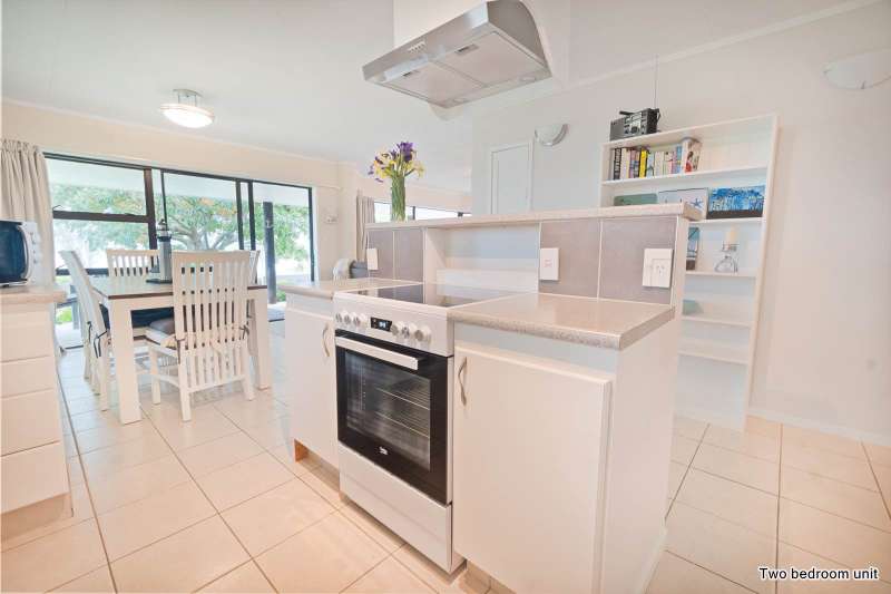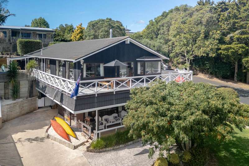 Positioned overlooking Skudders beach this two unit, two level home, offers a raft of options for the astute purchaser. The three bedroom, two bathroom upper level home features wrap-around decks; ranch sliders throughout providing all the indoor outdoor door flow one could want; the views akin to sitting on the bridge of a ship. Launch your watercraft across the road via the small boat ramp, it couldn’t be more convenient. The generous kitchen, lounge and dining areas provide a vista encompassing birdlife, boats navigating the channel, sun sets and blinking channel markers after dark creating a truly unique living experience… Soul food! At the other end of the house is the lined and carpeted garage come rumpus which offers a great space for crafts, band practice or parking for a vehicle. A large loft above provides ample storage. A large separate laundry completes the picture. Recent renovation includes new floor coverings, internal doors, interior paint throughout and tiling in the family bathroom. Heating provided by a near new Metro wood burner and Heat Pump. A heat transfer system is fitted supplying warmth to the three bedrooms in the cooler months. The lower level apartment ‘The Mooring‘ offers two bedrooms, modern kitchen, bathroom with laundry, a separate dining area and cosy lounging space. The views across the water are stunning as described by the many bnb guests who rate their stay here five stars. The large covered deck provides year round shelter and a perfect retreat for watching the world float by. With its own driveway, services including power, fibre and water it is fully equipped and compliant as a stand-alone dwelling. Recent refurbishment includes carpet, kitchen appliances and fresh paintwork throughout. A Heat Pump will keep you cosy year round. The generous parking on the lower level allows for trailer boats, caravans etc. Combined, these two homes have proven to be a cash cow for the owners who have enjoyed their years at Skudders Beach. However the call of the ocean means it’s time to set sail and pass this property on