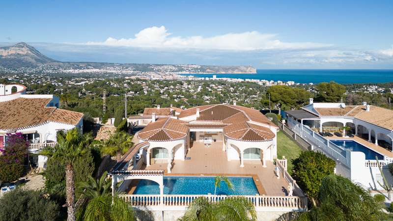 Located in the prestigious area of Rafalet, in Jávea, Alicante, this impressive luxury villa offers an unparalleled lifestyle in a privileged mountainous setting. This property stands out for its modern design and high-quality finishes. Its proximity to essential services, the golf course, and the city center makes it an ideal choice for those seeking comfort and exclusivity. The villa features five spacious bedrooms, three of which have en-suite bathrooms, along with two additional full bathrooms and an extra guest toilet, ensuring maximum comfort for all residents. Additionally, it includes a practical laundry room and a service room, facilitating home organization and maintenance. The exteriors are designed to make the most of the Mediterranean climate. The property boasts terraces perfect for relaxing or entertaining guests while enjoying panoramic mountain views. The private pool and private garden add a touch of exclusivity, creating a tranquil oasis amidst nature. Additional features include built-in wardrobes, a balcony, and a private garage, ensuring both functionality and convenience. This brand-new villa combines elegance and modernity, offering an exceptional home in a prime location.