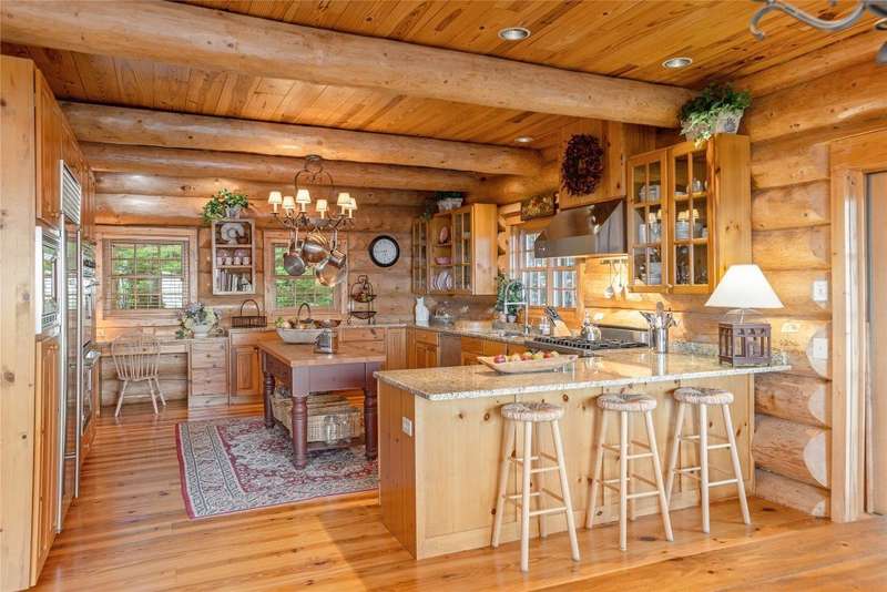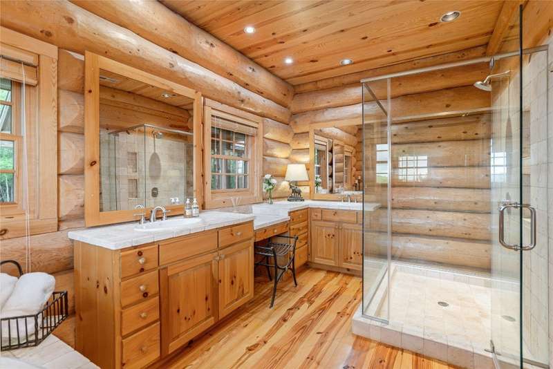 Perched atop over 12 secluded acres, this majestic log cabin estate is a rare and timeless offering - a legacy property where generations have gathered to celebrate life, love, and the breathtaking beauty of the Blue Ridge Mountains and Lake Toxaway. Every room, beam, and view tells a story. Thoughtfully crafted with intention and care, the home features five spacious ensuite bedrooms, each oriented to capture stunning vistas. The main-level primary suite is a serene retreat, complete with an impressive stone fireplace and direct access to outdoor tranquility. The main and lower-level living areas feature impressive wood-burning stone fireplaces and are framed by walls of windows that flood the interior with natural light, showcasing the expansive views. A spacious upstairs loft offers a quiet sitting area, while the lower level includes a flex room and workshop for hobbies or additional living space. At the heart of the home is a chef's dream kitchen featuring a Sub-Zero refrigerator, a Viking gas range, a Bosch dishwasher, and a large prep island. The kitchen seamlessly connects to the adjacent dining area, powder room, and laundry room. Ideal for entertaining guests or hosting intimate family gatherings, this home was designed for making memories. Outside, a private driveway leads through a laurel gate and over a picturesque bridge to a cascading waterfall. Multiple oversized decks, a screened-in sunroom, and a generous carport leading to a covered front porch offer abundant outdoor living space to enjoy the crisp mountain air and gaze at the mountains and moonrises. This remarkable estate, now being offered for the first time, is impeccably maintained, partially furnished, and offers enduring hardwood and large stone flooring, oversized bathrooms, and quality craftsmanship throughout. Located within the sought-after Lake Toxaway Estates community and just under an hour from Asheville Regional Airport, this home is ideally situated to enjoy the nearby mountain communities of Brevard, Sapphire, Cashiers, and Highlands. More than a home, this is a rare opportunity to create a legacy in one of Western North Carolina's most treasured settings.