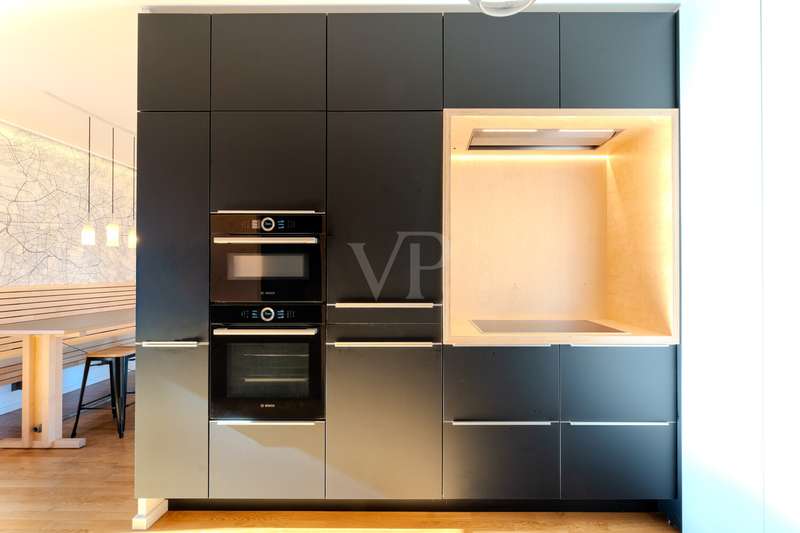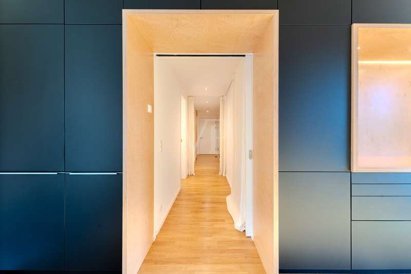 Welcome to an exceptional city apartment in the countryside, just 5 km from Alexanderplatz, which combines modern living comfort with architectural finesse. It is located in the quiet lake wing facing away from the street on the 3rd floor of an architect's house completed in 2020 and boasts an unobstructed view of the Weißer See. The combination of high-quality construction, well thought-out room concept and selected furnishings creates a stylish living ambience that meets the demands of contemporary living. The apartment offers four light-flooded rooms on a generous 112 m². Three bedrooms allow for individual usage concepts - whether as a children's room, work area or guest room. Numerous floor-to-ceiling windows in all rooms ensure plenty of natural light and a pleasant living atmosphere. Electric external shading regulates sunlight and heat as required. The open-plan living concept creates flowing transitions between the individual areas and promotes a feeling of spaciousness. A central element of the apartment is the open-plan kitchen and dining area, which is equipped with a custom-made, individual fitted kitchen in a modern design language. High-quality appliances, plenty of storage space and a directly adjacent dining area with a large dining table and illuminated map of Berlin invite you to cook and linger together. The custom-made bench fits harmoniously into the room concept and offers plenty of space for family and guests. The living area is accentuated by a panoramic window that opens up a sweeping view of the lake and further enhances and expands the space. Enjoy magnificent sunsets and seasonal views of nature far away from the hustle and bustle of everyday life. The bathroom features a floor-level rain shower, an elegant washbasin and high-quality sanitary elements. There is also a separate guest bathroom with a walk-in shower. Both bathrooms are designed with large-format natural slate. All other rooms have oiled parquet flooring that radiates warmth and comfort. Underfloor heating ensures a pleasant indoor climate, supported by a modern ventilation system and triple-glazed windows - for an energy-efficient and comfortable home at any time of year. The individual design solutions are particularly noteworthy: Flexible built-in wardrobes with a seating cube, a high-quality wall bed and a pull-out bench in the checkroom area ensure optimum use of space and set aesthetic accents. The modern practicality of the furnishings goes hand in hand with a harmonious overall effect that radiates calm and structure. Direct access from both the street and the park side with a modern video intercom system ensures a comfortable arrival. A parking space with a possible electric charging connection and a cellar room round off the offer. The architecturally sophisticated planning and high-quality fittings make this apartment an exceptional home for people with an appreciation of high-quality, timeless living culture. You are welcome to arrange a viewing appointment to see the benefits of this property for yourself.