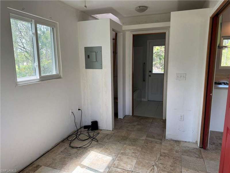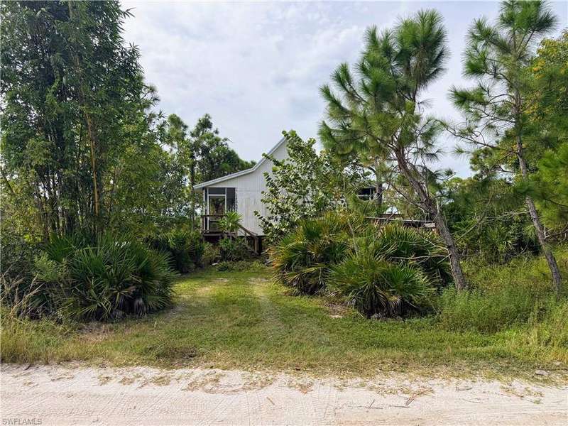 Welcome to Stillpoint, a one-of-a-kind retreat on a quiet half-acre in Bokeelia. Nestled along a sandy, gravel road, this home feels like a treehouse surrounded by lush vegetation, offering both privacy and a strong connection to nature. The one-bedroom layout is complemented by a versatile loft-ideal for an art studio, meditation area, or a home office, and spacious enough to be converted into an additional bedroom. Screened porch on the west side and open on the east side frames stunning sunrises and sunsets, with the west side also featuring a convenient wheelchair ramp. Modern sustainability meets comfort with solar panels, a covered pergola for parking, and an electric car charger. Located in an X500 zone at the highest point on the island, flood insurance is not required. Just minutes away, you'll find marinas, restaurants, and access to the beautiful islands around Pine Island-perfect for boating, dining, and exploring the coast. Peaceful and secluded, Stillpoint is more than a home-it's a place to create, unwind, and live in harmony with the landscape.