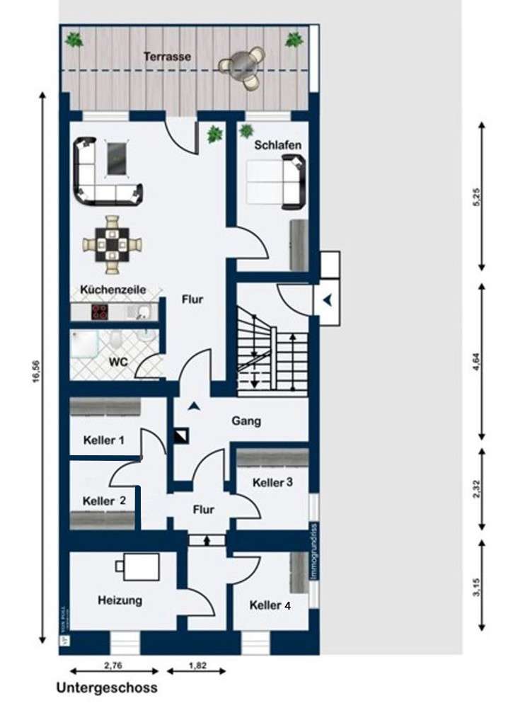Here you can acquire a completely rented 4-family house in the residential area "Galgenberg" close to the center of Böblingen. The 4-family house was built in massive construction and stands on a rectangular plot with about 341 m² and is directly connected to the neighboring house. In the whole street are multi-family houses built. In only a few minutes walking distance you can reach a supermarket (approx. 500 m), kindergarten (approx. 950 m), school (approx. 800 m), high school (approx. 650 m), bus stop (approx. 500 m), S-Bahn connection (approx. 900 m) and a doctor (approx. 850 m). Likewise, the shopping mile (about 750 m), the shopping center: Mercaden (approx. 950 m) and Lake Böblingen (approx. 800 m) can be reached quickly. For the 1st part (conversion area) of the house, unfortunately, no year of construction can be communicated, since no information is available here. There was a new construction / reconstruction, which was carried out in 1981. The facade of the building is insulated and plastered. The double garage with green roof and electric garage door was subsequently approved and built in 1990. The garage is located in the rear part of the property. The building consists of a basement, first floor, upper floor and an attic with gallery. There are a total of 4 apartments in the property: Basement: 2.0 rooms with 44.40 sq.m. First floor: 4.0 rooms with 89.00 m² Upper floor: 3.5 rooms with 89.00 m² Attic: 3.0 rooms with 94.50 m² Total living space: 316.90 m² The allocation of the adjoining rooms / cellar rooms is done via the respective rental contracts. All fitted kitchens of the respective apartments are the property of the tenants. All apartments are rented and the annual rental income amounts to a total of 37,080 EURO. PLEASE NOTE THE FOLLOWING: There is NO declaration of partition for the 4-family house. This must be done by the new owner himself. For a viewing appointment of the property a current financing confirmation must be presented in advance.