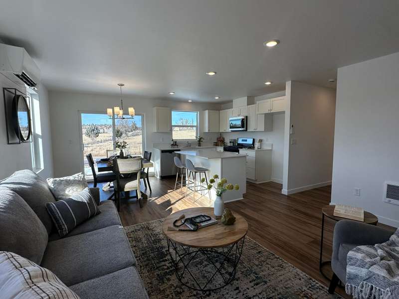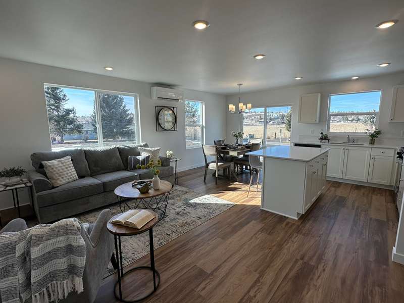 Welcome to Sagebrook Estates! This beautifully designed residence offers a great room layout w/ 3 bd & 2 bth. Step inside to discover a bright & inviting living space with sleek LVP flooring & plush carpeting. The open-concept layout seamlessly connects the living area to a stunning kitchen equipped w/ quartz countertops & stainless steel appliances. Enjoy year-round comfort w/ efficient ductless heating & cooling system, ensuring you stay cozy in winter & cool in summer. Plus, the tankless water heater provides endless hot water for your daily needs. This home is also Energy Star certified, providing energy-efficient features that help reduce your utility bills & environmental footprint. Double car garage & front yard landscaping. Located in the desirable Sagebrook Estates community, you'll enjoy a peaceful neighborhood vibe while being close to local amenities and parks.