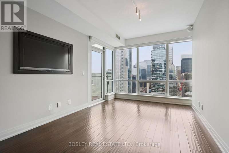 Festival Tower at TIFF Lightbox is a luxury condominium offering front row access to Toronto's Entertainment District. Exceptionally well maintained, this Pacino model offers 683 square feet with a smart 1 bedroom plus den layout, plus a spacious balcony with clear city views to the east and CN Tower and lake views to the south. Inside, you'll find hardwood floors throughout, a modern kitchen fitted with a full suite of Miele appliances, and ample storage. The built-in revolving TV and integrated sound system let you enjoy shows and music in both the living room and bedroom. Residents at Festival Tower have access to premium amenities, including a 55-seat private cinema, indoor pool, spa, and sauna, fully equipped fitness centre, yoga and pilates studio, rooftop sundeck, multiple lounges, 24hr concierge, and on-demand services including housekeeping, dog walking, dry cleaning and more. Living here also means being steps from TIFF premieres, theatres, restaurants, and nightlife, plus just minutes to the Financial District, CN Tower, Rogers Centre, and Scotiabank Arena. With the TTC streetcar right at your door and St. Andrew subway station nearby, getting around the city is seamless. This residence comes with both parking and a locker, rounding out the full package.