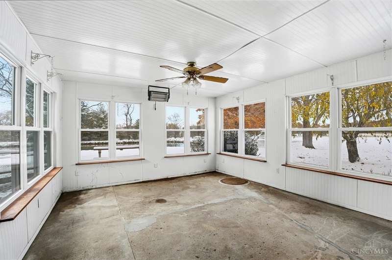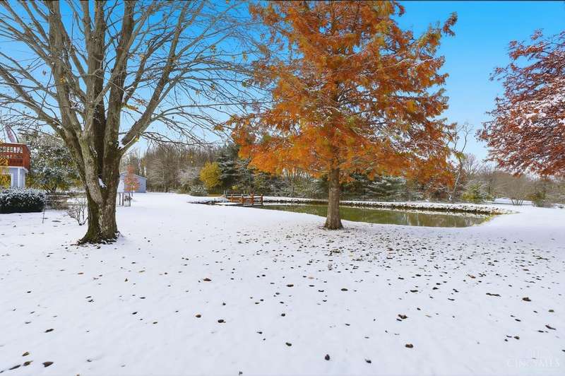 The snow just added a little extra charm to this 5 Acre property in Little Miami Schools. 3 bedrooms, 1.5 Baths plus an enclosed porch, large pond and 36' x 48' outbuilding