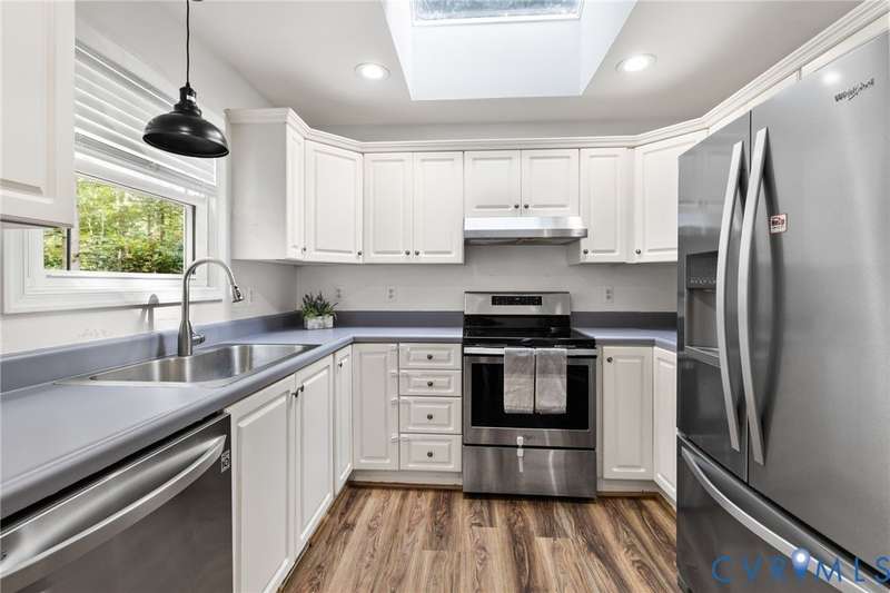 Welcome to 7466 Pinehurst Dr., a beautiful ranch home with a full basement, perfectly situated on the 8th hole of the Brookwoods Golf Course in Five Lakes Subdivision! The main level features a comfortable family room with a gas fireplace 3 skylights, recessed lighting, ceiling fan/light with remote, and newer sliding glass door to the deck. Living room/office with vinyl plank flooring, tray ceiling and lots of natural light. Dining room with vinyl plank flooring, attractive overhead lighting, and outside entrance to deck for outside entertaining. Kitchen with white cabinets, stainless appliances, skylight, pantry, 3 Lazy Susan cabinets, and eat-up bar. Primary bedroom with newer laminate flooring, recessed lights, tray ceiling, bay window, sitting area, and larage walk-in closet. Primary bath with ceramic-tile flooring, double vanity, jetted tub, separate shower and skylights. Two more additional bedrooms on first level with newer laminate flooring, ceiling fan/lights, and double door closets. While the basement expands the living space with a second kitchen, three additional versatile rooms, and a full bath-ideal for guests, entertaining, or multi-generational living. Enjoy outdoor living with a deck overlooking the fenced rear yard and peaceful setting. The home also includes a two-car oversized garage with lots of storage, and solar panels to help reduce energy costs. This home combines comfort, functionality, and a golf course setting-perfect for everyday living and entertaining! Truly a special place to call home!