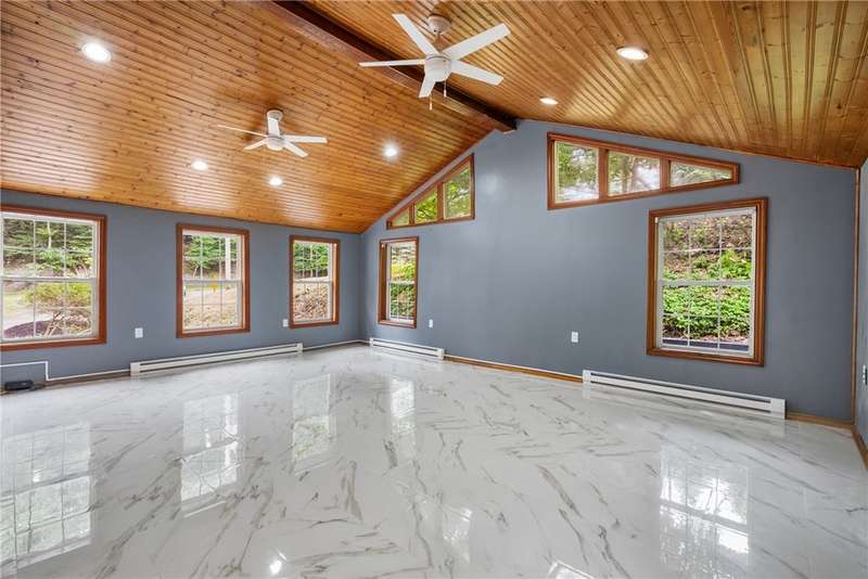 Must see this sprawling home nestled on an amazing quiet, private lot in Aleppo Township in the Quaker Valley School District!!! Spacious, modern, newly updated home conveniently located near shopping and access to the city. Sparkling tile flooring throughout and unlimited sunlight w skylights throughout! Plenty of rooms with ample space for a very flexible floor plan. Layout: Main Floor- Entry, Living Room, Dining Room, Kitchen, Family/Sun Room, Great Room, and Full Bath. Upper Floor- 4 Bedrooms and Full Bath. Lower Floor- Game Room. Plenty of off street parking! Expansive Multi Tiered Deck, Pool House and Shed. Peaceful rear oasis- perfect for your morning coffee or cookouts! Updates include Kitchen w Quartz Counters, Tiled Baths w Jetted Tub, Floors, Int/Ext Paint, Lighting, Electrical, Plumbing, Main Roof, Finished Basement, Deck and Landscape. Great sized worry free home- perfect for entertaining, young children, or pets. Move right in and enjoy!