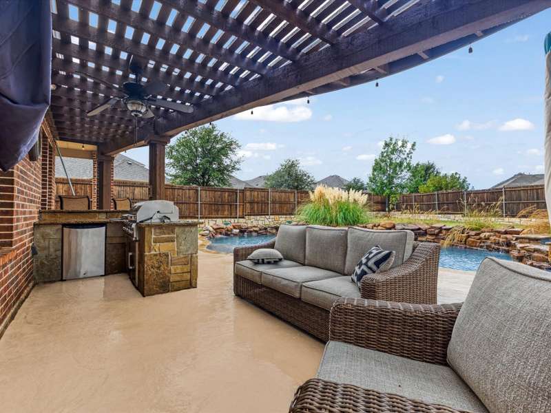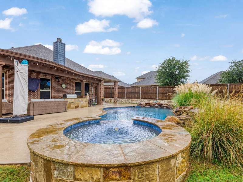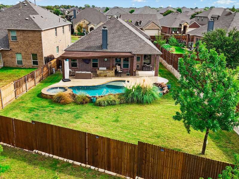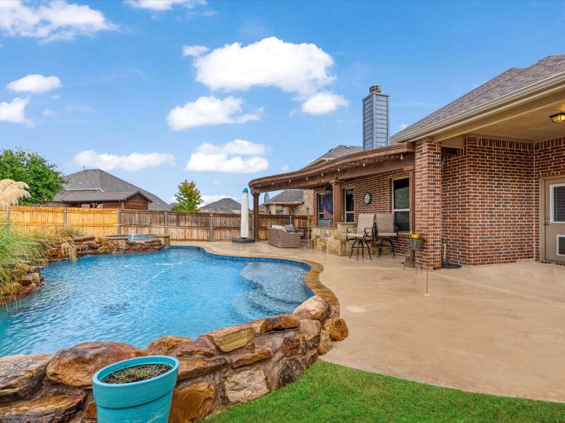 Welcome to 3608 Fordham St, a beautifully maintained home in the highly desirable Rivendale by the Lake community of Frisco. This spacious 3-bedroom, 2-bath, plus flex room or office, home offers the perfect mix of comfort, style, and convenience ready for you to move right in! Open-concept floor plan featuring hard wood flooring, a bright living area, and a modern kitchen with granite countertops, stainless steel appliances, and a large island ideal for cooking and entertaining. The primary suite is a peaceful retreat with dual sinks, a soaking tub, separate shower, and walk-in closet. Step outside to enjoy a private backyard with a covered patio, outdoor kitchen, and an amazing private pool and spa on an oversized lot. Great for relaxing evenings or weekend barbecues. Residents of Rivendale by the Lake enjoy amazing amenities: a resort-style pool with water slides, playgrounds, walking trails, and easy access to Lake Lewisville. Located minutes from The Star, Grandscape, and major highways, youll have quick access to dining, shopping, and entertainment. This home is move-in ready and offers a great balance of location, lifestyle, and comfort come see why 3608 Fordham Dr is the perfect place to call home!