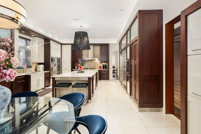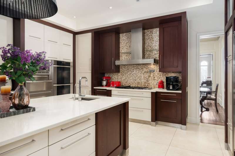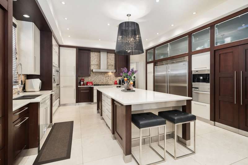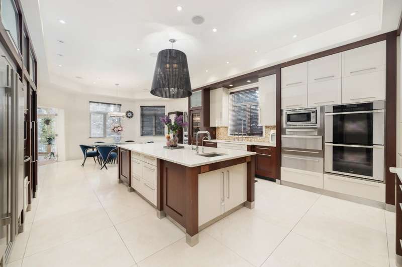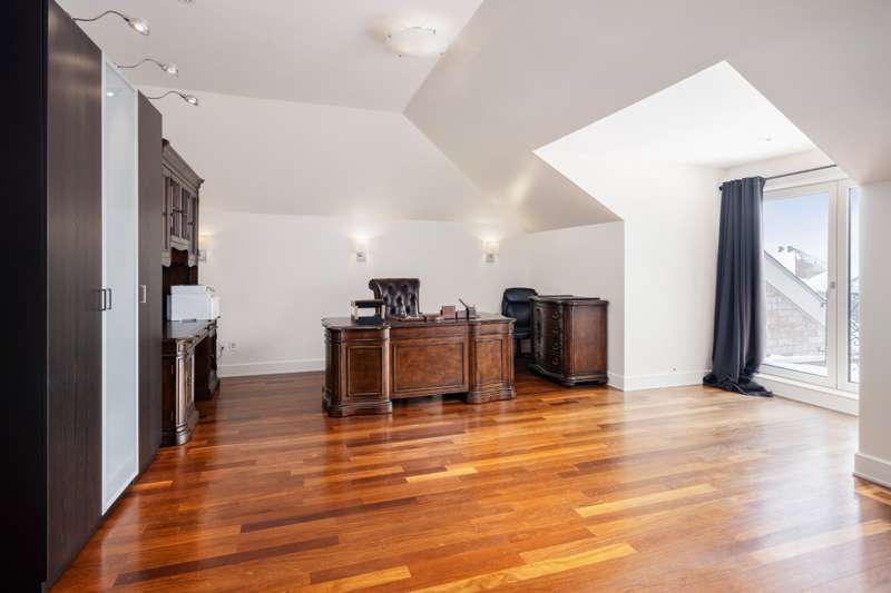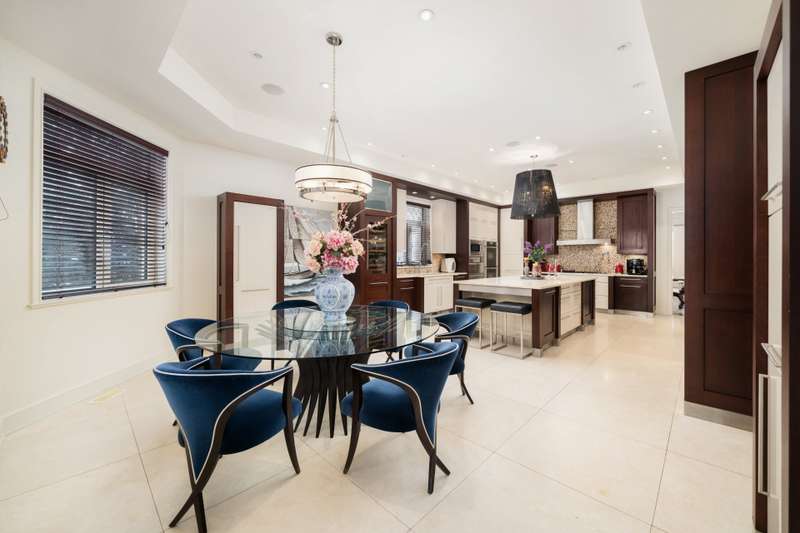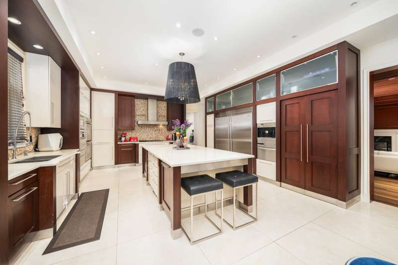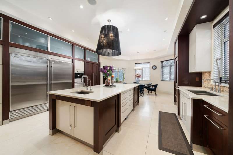 Located in prestigious Nouveau St-Laurent, this custom-built home offers 7 bedrooms, 7 bathrooms, and 2 powder rooms. A stunning stone facade, manicured lawn, private driveway for six cars, and a three-car garage with lift expansion. Grand entrance with marble floors, soaring ceilings, wrought-iron staircase, and elegant moldings. Gourmet kitchen with central island, Sub-Zero fridge, Miele appliances. Four-season solarium opens to a heated saltwater pool and BBQ. Master suite with gas fireplace, spa tub, steam sauna, Toto toilet, gym, and walk-in closet. High-end home theater, spa with massage room, sauna and exquisite cellar. A unique gem.