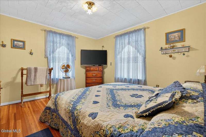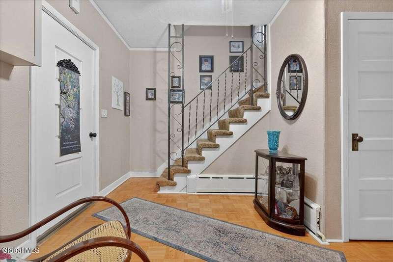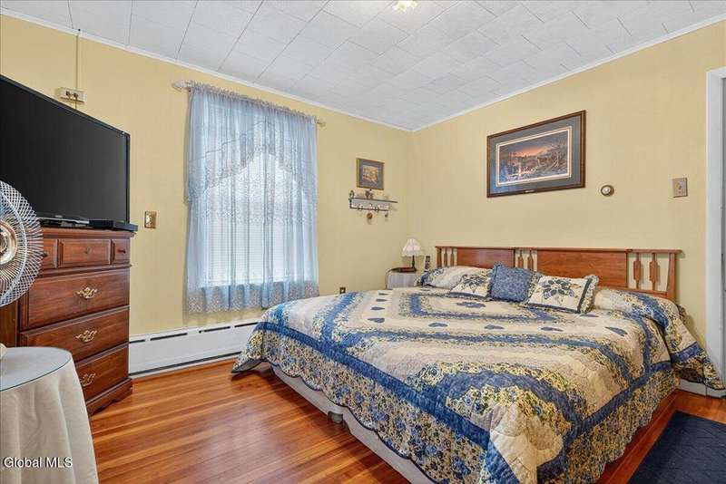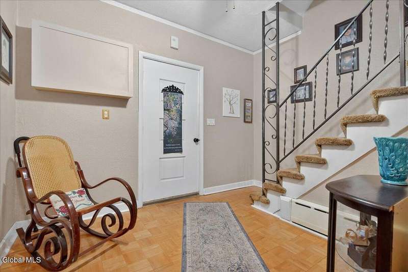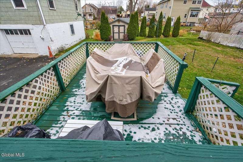 Welcome to this truly American Foursquare Colonial. A beautifully maintained home that offers the perfect blend of classic charm and modern updates. Set on a 50' x 125' lot, this residence offers comfortable living spaces and thoughtful upgrades.3 spacious bedrooms plus a dedicated office?ideal for remote work or guest accommodations. 2 full bathrooms with modern finishes. Hardwood floors in primary and under carpet in living room and bedrooms. Large living room with abundant natural light, perfect for gatherings. Generous eat-in kitchen with refrigerator, stove, and dishwasher included. Convenient main floor laundry room with washer and dryer. Walk up attic for additional storage. Recent updates include: New downstairs windows (Spring 2025); New upstairs windows (Fall 2024); New wall AC unit cooling the entire first floor; Slate roof with repairs completed (Spring 2025); Driveway sealed and home power washed (2024).Enjoy the outdoors on the pressure-treated deck overlooking the manageable yard with room for play or pets. Storage shed included. Hot water baseboard heat for efficient warmth. Classic slate roof for long-term durability. This home combines modern convenience with timeless appeal, offering the opportunity of homeownership in an established neighborhood. With its versatile office space, updated systems, and inviting layout, it's the perfect place to call home. Schedule your private showing today!