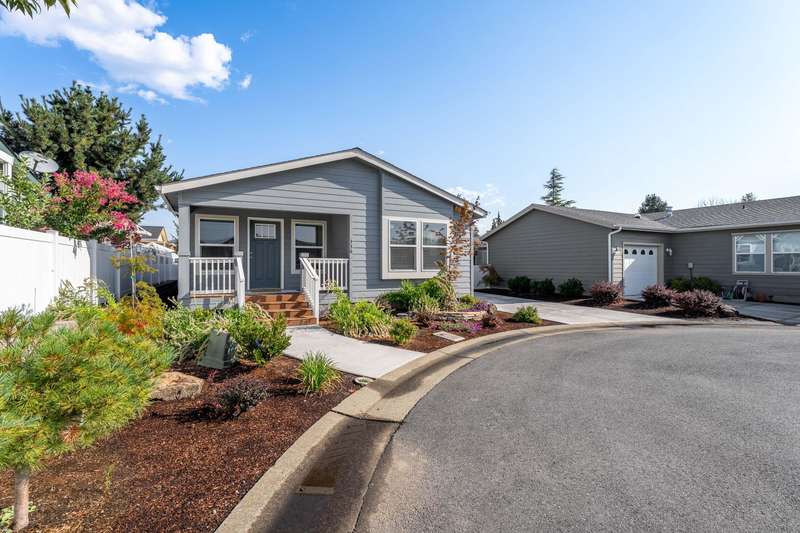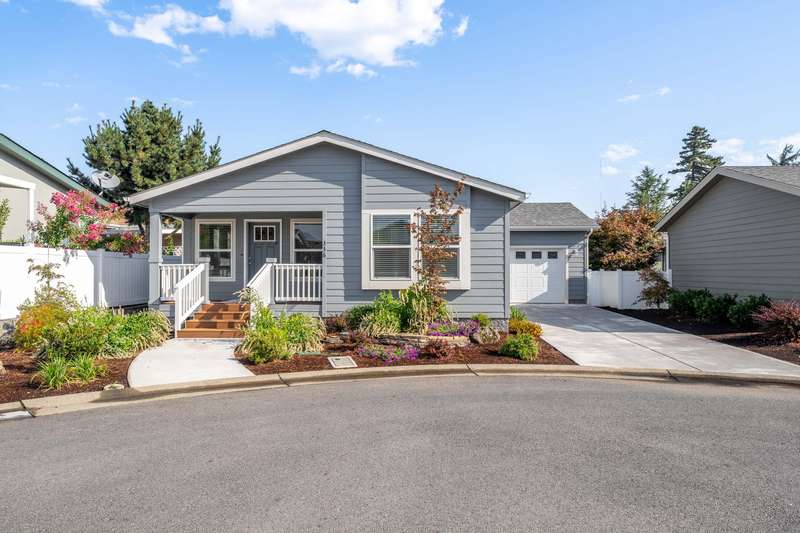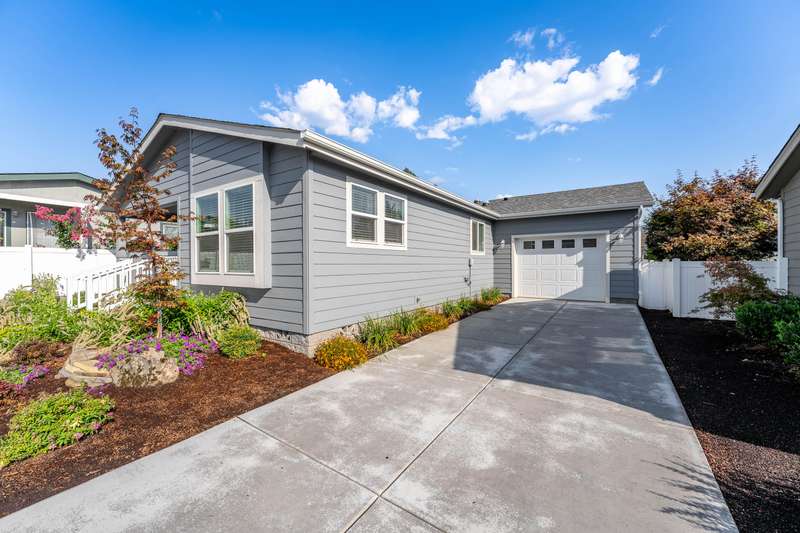 Brand new Energy Star home in Westlake Village, the premier 55+ community with competitive space rent of $850 per mo. Pet friendly w/restrictions & approval. Home offers an office, vaulted ceilings, & an open layout filled with natural light. The kitchen is well appointed with gas range, microwave, refrigerator, dishwasher, farm sink. Outdoors you will find low-maintenance landscaping, a charming covered front porch, & a fenced backyard with covered deck, perfect for enjoying peaceful evenings or entertaining friends. The oversized single-car garage features an automatic opener for convenience. Gated entry, management staff, a scenic lake, walking paths, gazebo, a clubhouse with event space, library, and fitness center—all complimentary to residents & guests. Ideally located close to downtown, & the Rogue River. One-year factory warranty included. Priced below cost! Buyer to perform their own due diligence into all aspects of the home & park. Buyer to obtain Tenancy Park Approval.
