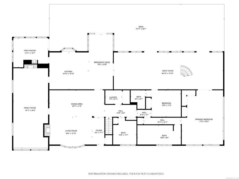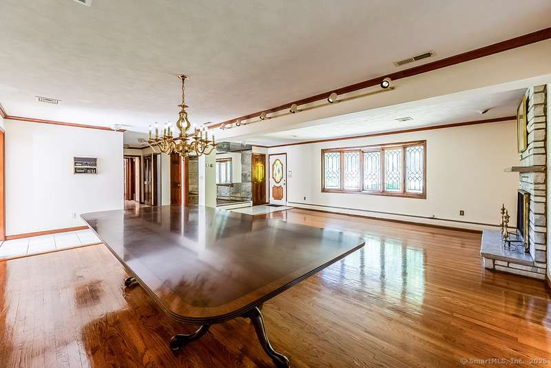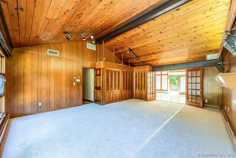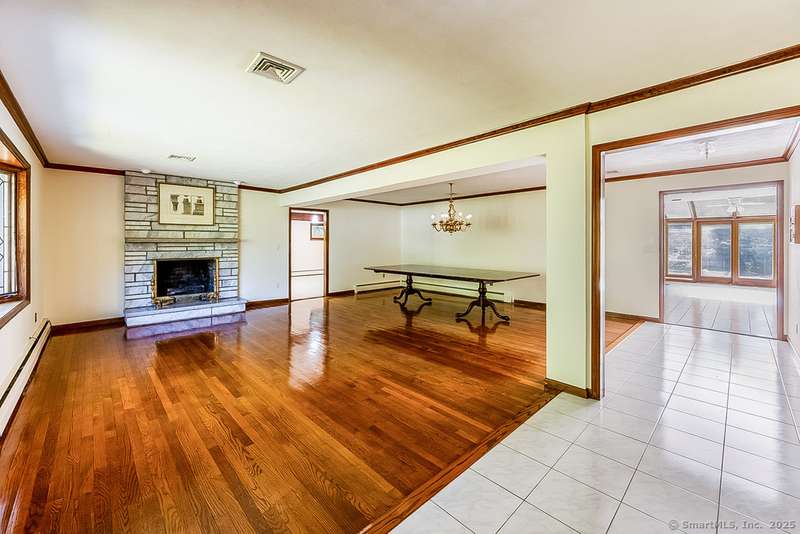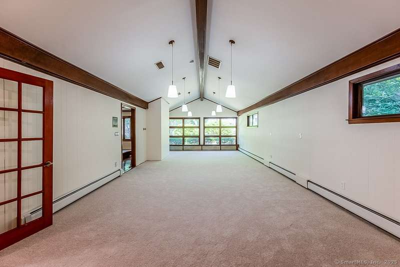 Welcome to Nichols! This expansive 4,807 sq. ft. ranch/contemporary home, built in 1962, offers endless possibilities & incredible space in one of Trumbull's most sought-after locations - steps away from Pinewood Lake. Featuring 11 rms, 4 bedrooms, & 4 full bths, this residence provides the flexibility today's buyers are looking for. As you enter the front door, you'll be greeted by a spacious living/dining room combo w/ a fireplace. Off the living room, you'll find a spacious family room with an additional fireplace, & an enormous fully equipped kitchen with a separate prep pantry-perfect for entertaining or even as a garden room. Off the breakfast area of the kitchen is a huge 46' great room with numerous sliders to the 74' deck w/new boards. On the main level you'll find a large primary bedroom w/huge bathroom - jacuzzi tub & separate shower. Second bedroom with a private bathroom, along with a third full bath off the hallway. Separate laundry room as well. Upstairs, you'll find ove