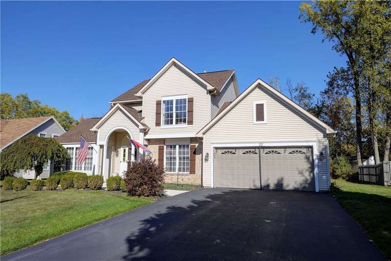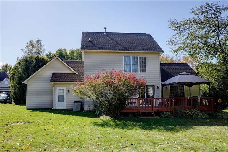 As Soon as You Enter the Foyer of this Spectacular Contempory Colonial it says Welcome Home! The Foyer Glows with the Warmth of the Hardwood Floors! Sizable Vaulted Great Room featuring a Gas Fireplace allowing such a Cozy Gathering Space! Bright and Cheery White Cabintry Kitchen with Multi-Color Glass Backsplash and Hardwood Floors. First Floor Den/Office could be Fourth Bedroom with Access to First Floor Full Bath or Formal Dining Room. Spacious Primary Bedroom has a Large Walkin Closet and Private Primary Bath. 3 Full Bathrooms with Granite Countertop Vanities. Convenient First Floor Laundry. Enjoy the Warmer Weather on the Rear Deck overlooking the Parlike Yard! Nice Garage with Heat. Home also Equipped with Leaf Filters for gutter guards. This Home Sparkles Inside and Out! Ideal Location convenient to Expressways, Shopping and Brockport Village. A Must See!
