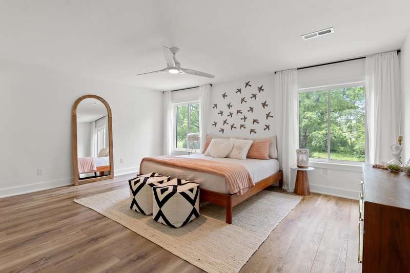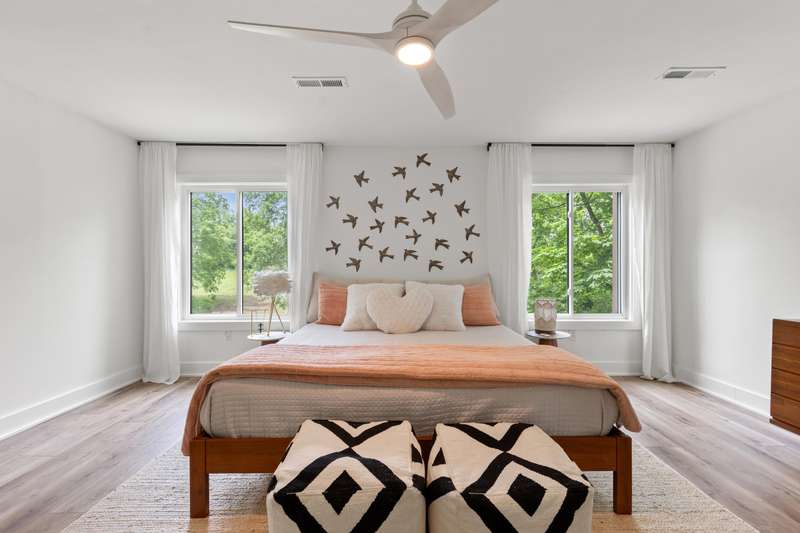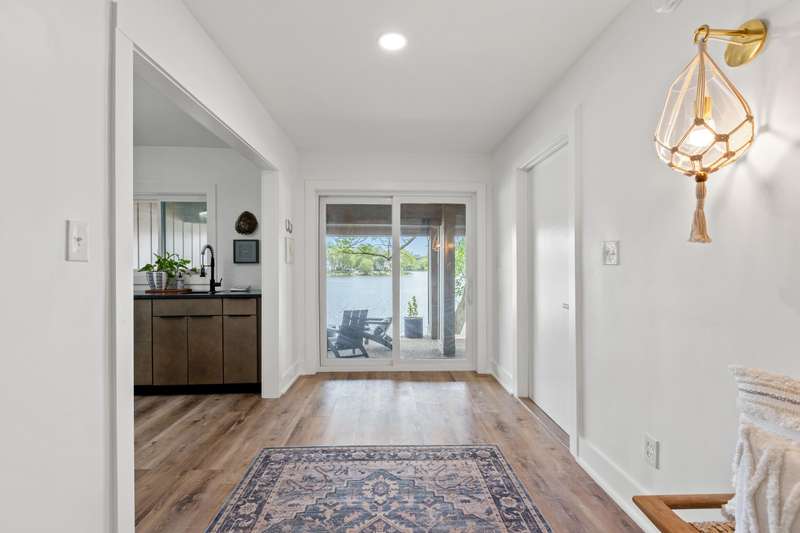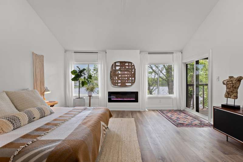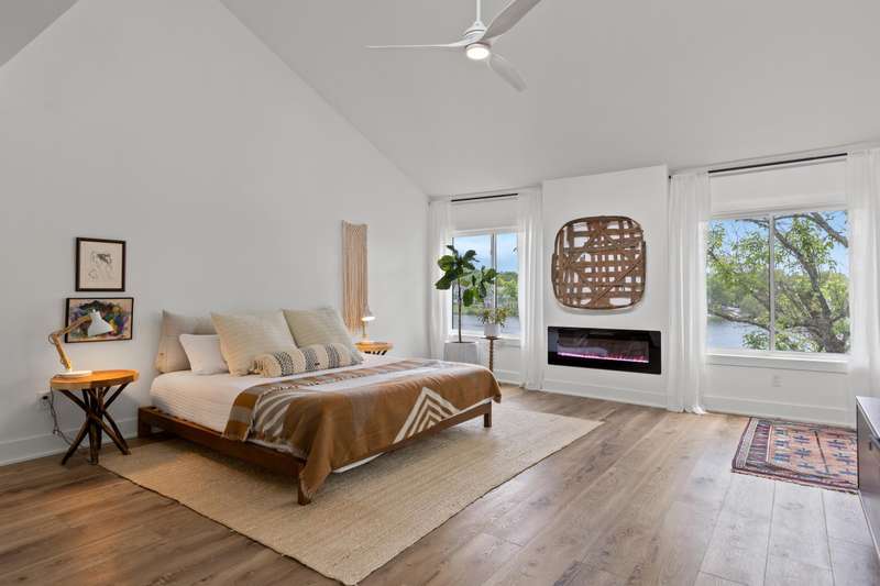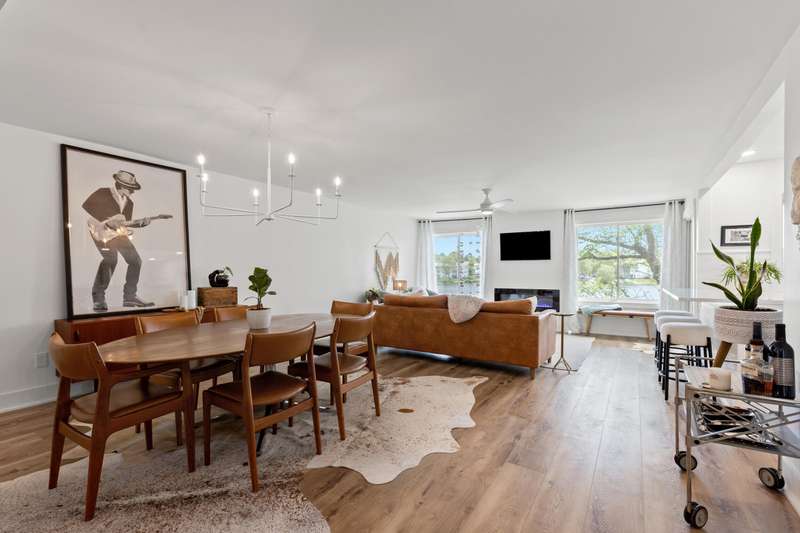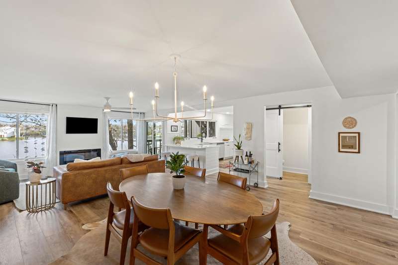 Don't miss this rare opportunity to own a fully renovated three-story townhome offering stunning waterfront views from every level and abundant natural light throughout. The first floor features an inviting entertainment area with a wet bar, two-car attached garage, sliding doors to a covered patio, direct water access, and a private dock. On the main level, you'll find a modern kitchen with sleek cabinetry and a walk-in pantry, open to the living room with a cozy fireplace, dining area, and access to the second-floor deck. This level also includes a guest half bath, an ensuite bedroom, and a flexible bonus room ideal for a home office. The third floor highlights architectural ceilings with transom lighting, an expansive primary suite with private deck access, a fireplace, walk-in closet, and ensuite bathroom featuring a tiled shower and double vanity. Two additional bedrooms, a full bathroom, and a convenient laundry room complete the upper level. Located in Lakeshore Village, this home offers low-maintenance living with access to a pool and clubhouse overlooking the water, all just minutes from Chevy Chase Plaza and Idle Hour Shopping Center.