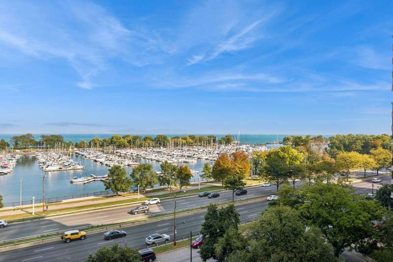 Rarely available! Large one bedroom with balcony and fabulous views of the lakefront and Belmont Harbor. Updated unit with hardwood floors, kitchen with quartz counters and undermount sink, stainless steel appliances, bath with marble shower surround. Well maintained building with 24 hour door staff, onsite maintenance and management, storage lockers, laundry room, exercise room. Building is in great condition having replaced elevators, risers, and windows. Monthly assessment includes heat, air conditioning, internet, and cable. Rental garage parking available in the building. Easy to show! Move in condition!