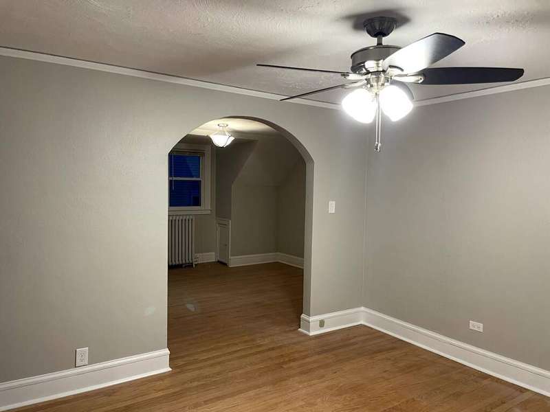 UNBELIEVABLE location in Highwood, across from Oak Terrace school. SECOND floor apt in 2-flat with private entry. Hardwood floors. Three bedrooms, living room, dining room & kitchen, one bath (tub/shower combo). Walk to everything in bustling Highwood, train, shopping, dining, Lake, library. No smoking apt/non-smoking building. No vaping. Gas heat bill shared between 2 units (cozy hot water radiator heat), window/wall AC unit included for Summer. Tenant pays their electric bill, 1/2 gas bill. All new insulation, freshly painted light gray, with new ceiling fans & fixtures, stainless dishwasher. Common Laundry on site in basement. Street parking, possible driveway space, in this residential neighborhood. No garage. Lawn care included. Ideal for longer term residents. Applicants please verify 3x the rent for monthly income, or the same from an approved co-signer. Prop mgr has an IL real estate license, and ownership interest.