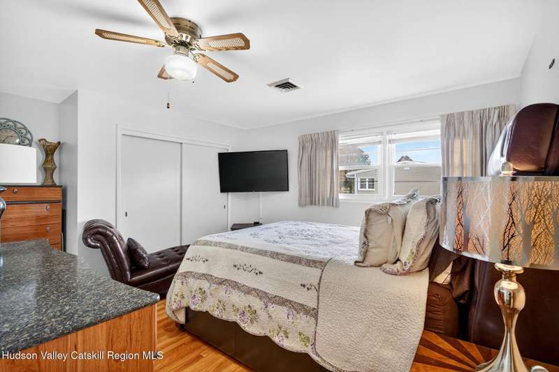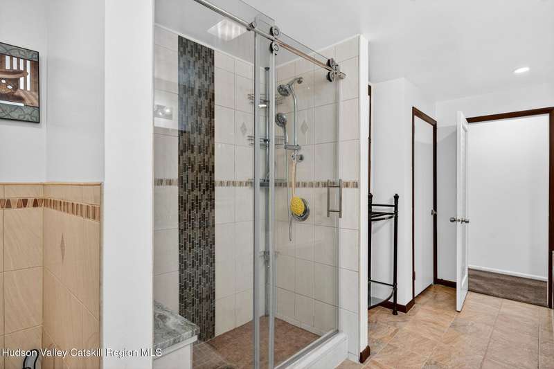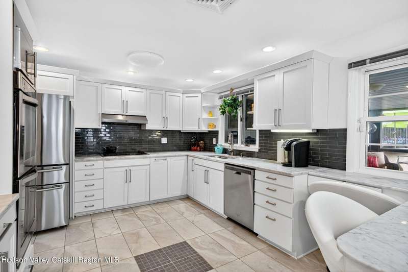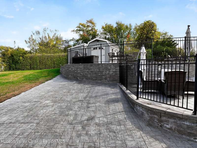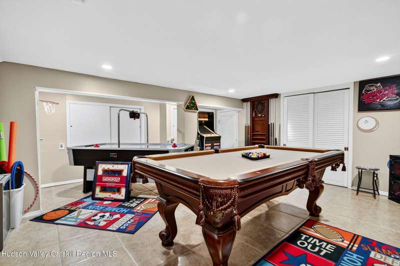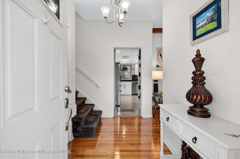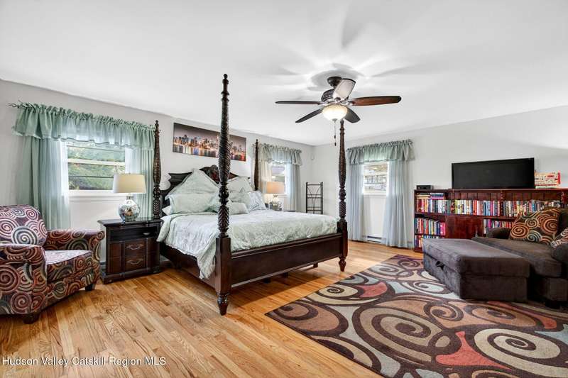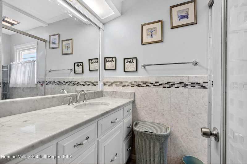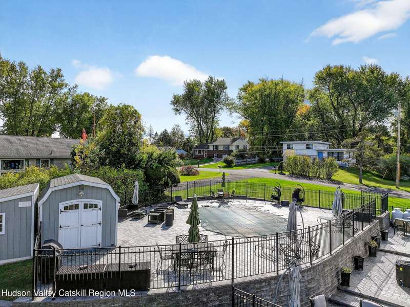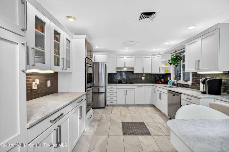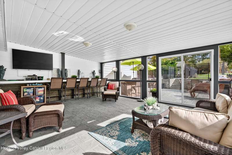 This stunning home offers the perfect blend of comfort, elegance, and functionality. A floor-to-ceiling stone fireplace creates a dramatic focal point in the spacious living area, filled with natural light from large windows and skylights. The impeccably maintained hardwood floors add warmth and character throughout. With four bedrooms plus an additional room currently used as an office, there's space for everyone. The expansive primary suite features two separate walk-in closets and a luxurious feel throughout. Kitchen is well appointed with multiple built in ovens as well as newer stainless appliances and quartz countertops. The lower level offers a laundry room, recreation room, and a large family-style room complete with a bar and built-in window benches-perfect for cozy evenings or entertaining year-round. A whole-house generator ensures peace of mind during power outages, and the immaculate garage with tiled floors adds to the home's impressive presentation. Outdoors, the home is designed for entertaining and relaxation. Paver-lined driveways and patios surround a sparkling heated in-ground pool-ideal for summer gatherings with multiple areas for guests to spread out and enjoy. The screened-in side porch opens directly to the pool area, providing a seamless indoor-outdoor flow. Grass will always be green with the sprinkler system that was installed. Located in the Elmendorf Heights subdivision which is close to Old Town of Hurley (lots of stone houses) as well as Uptown Kingston. This home offers both beauty and value.