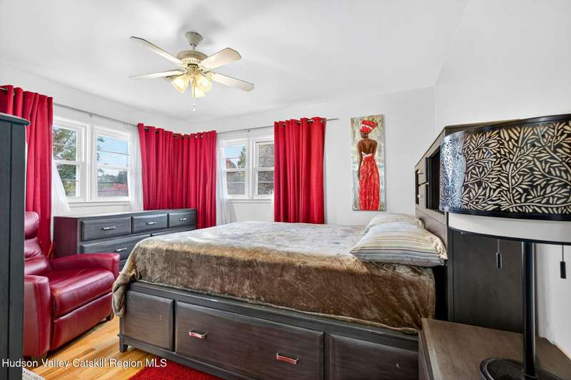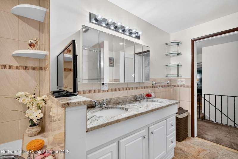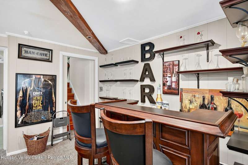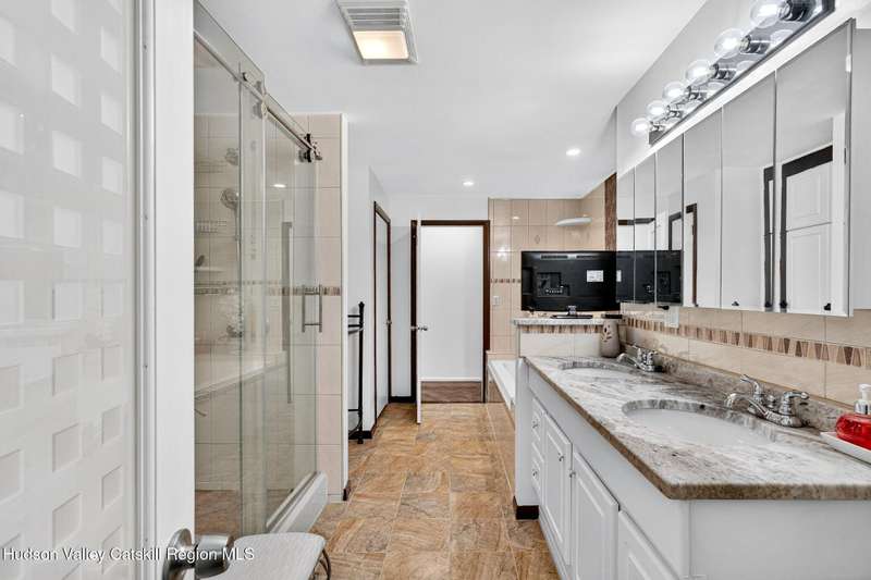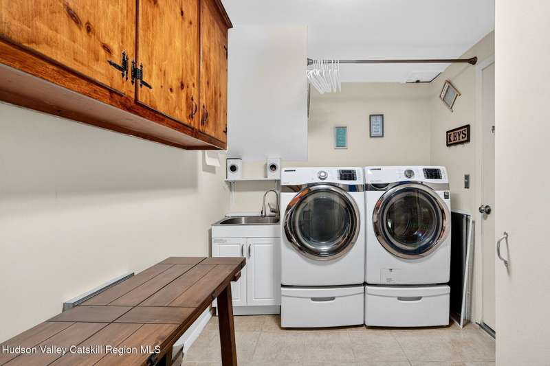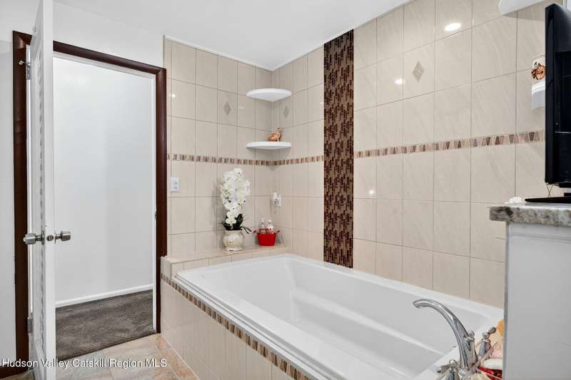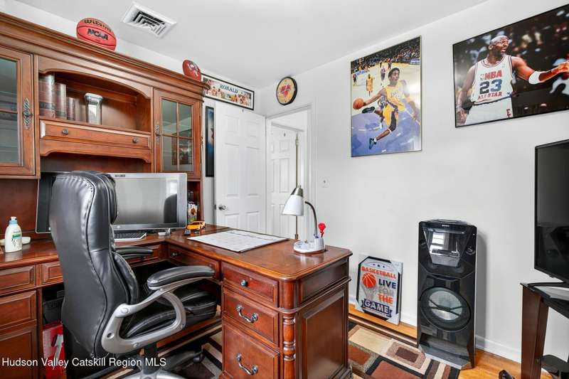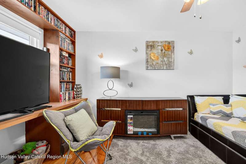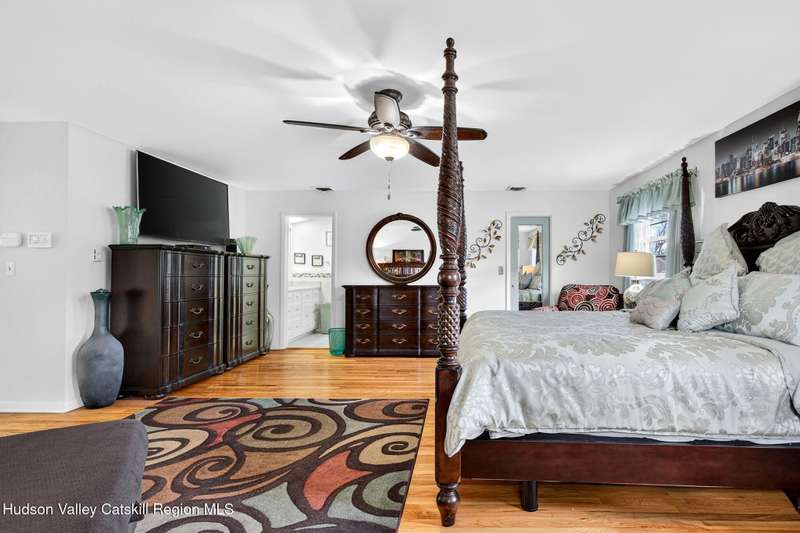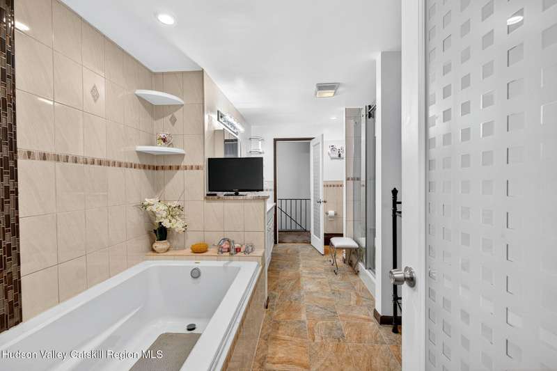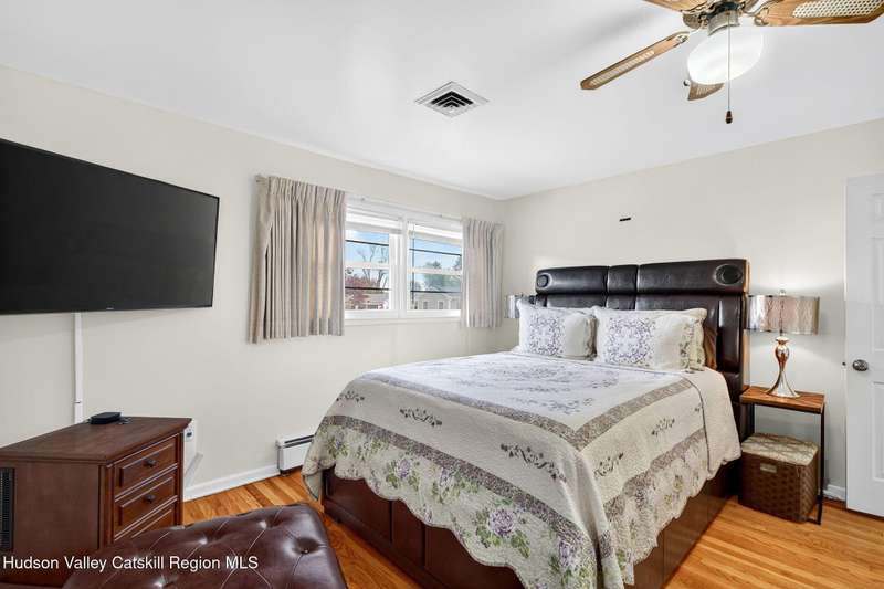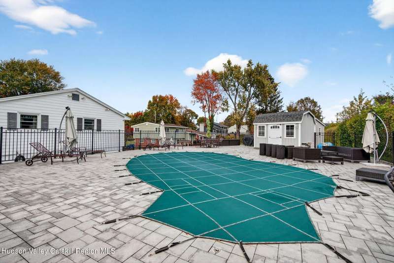 This stunning home offers the perfect blend of comfort, elegance, and functionality. A floor-to-ceiling stone fireplace creates a dramatic focal point in the spacious living area, filled with natural light from large windows and skylights. The impeccably maintained hardwood floors add warmth and character throughout. With four bedrooms plus an additional room currently used as an office, there's space for everyone. The expansive primary suite features two separate walk-in closets and a luxurious feel throughout. Kitchen is well appointed with multiple built in ovens as well as newer stainless appliances and quartz countertops. The lower level offers a laundry room, recreation room, and a large family-style room complete with a bar and built-in window benches-perfect for cozy evenings or entertaining year-round. A whole-house generator ensures peace of mind during power outages, and the immaculate garage with tiled floors adds to the home's impressive presentation. Outdoors, the home is designed for entertaining and relaxation. Paver-lined driveways and patios surround a sparkling heated in-ground pool-ideal for summer gatherings with multiple areas for guests to spread out and enjoy. The screened-in side porch opens directly to the pool area, providing a seamless indoor-outdoor flow. Grass will always be green with the sprinkler system that was installed. Located in the Elmendorf Heights subdivision which is close to Old Town of Hurley (lots of stone houses) as well as Uptown Kingston. This home offers both beauty and value.
