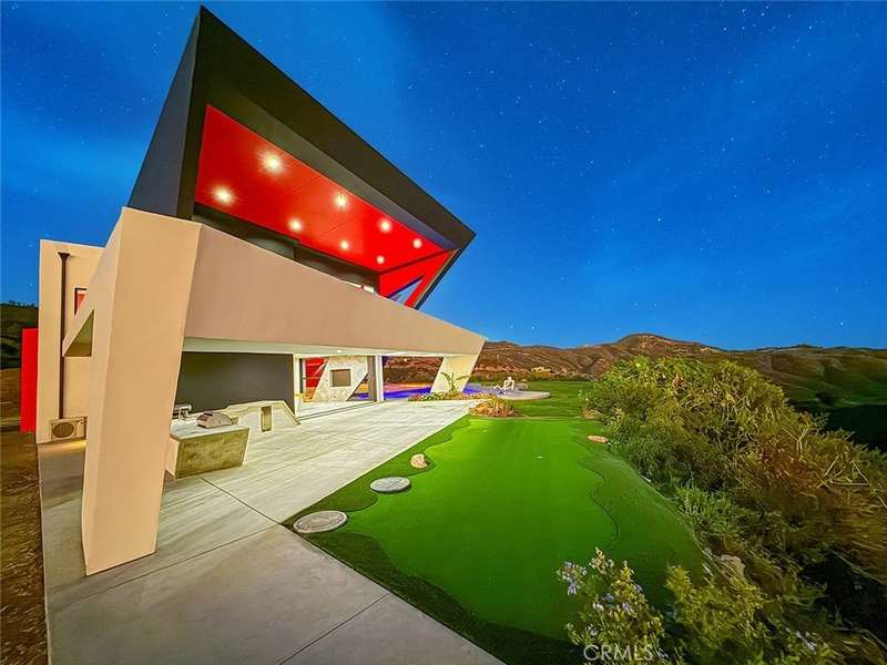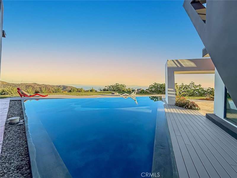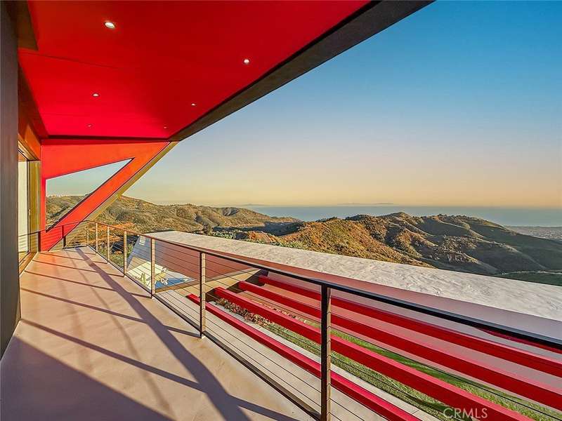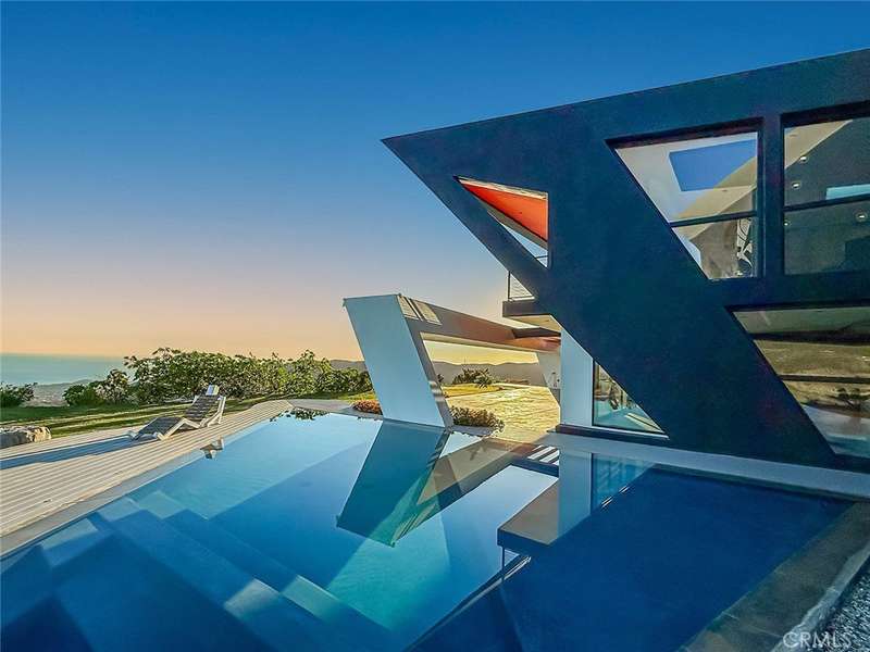 Soaring jetliners & sweeping views spanning Catalina to Santa Monica set the stage at The Aviator—a striking, architecturally significant Malibu escape by renowned designer Amit Apel. Perched at the end of a private road at the top of the world, this bold, modern sanctuary draws inspiration from the grace and precision of flight. A sculptural interplay of steel, crisp architectural lines, and signature circular windows create a sense of movement and lift, giving the residence its unmistakable presence. This one-of-a-kind retreat is equipped with a state-of-the-art Smart Home system that controls lighting, security, pool, and solar system—all automated & effortlessly accessible. Through the glass entry, the home unfolds into a dramatic open-concept living space defined by custom art, rich textures, & dynamic architectural forms. Floor-to-ceiling retractable walls vanish to frame endless ocean, canyon, and skyline views, blurring the line between indoors & out. The sleek European-inspired kitchen features premium stainless steel appliances, a six-burner gas cooktop & spacious center island with a breakfast bar with custom seating. A warm yet sophisticated ambiance flows seamlessly into the dining and family areas, where bold style and comfort unite. The main level also includes a bedroom with a circular window. Ascending the stairs, 2 luxurious primary suites await. The first boasts sweeping ocean & Malibu city vistas and an Art Deco–inspired bath with stunning glass-enclosed shower, soaking tub, dual sinks, & mountain views. The second primary suite mirrors the home’s refined design language, showcasing bold lines and vibrant accents, with panoramic views of Santa Monica and the Pacific. Its spa-like bath offers a deep soaking tub, dual sinks, and custom shower. A third “hidden” room serves perfectly as an office, lounge, or creative studio. The outdoor living spaces are a world unto themselves. A dramatic triangular zero-edge pool and spa appear to float above the horizon. The fully outfitted outdoor kitchen—complete with BBQ, grill, refrigerator & pizza oven—invites unforgettable alfresco dining. Additional highlights include a private putting green, oversized fire pit with flame wall, and an open-air movie screening area for evenings under the stars. Designed for both spectacular entertaining and self-sustaining independence, The Aviator offers the rare ability to live comfortably “off the grid.” This is more than a home—it is a statement of vision.
