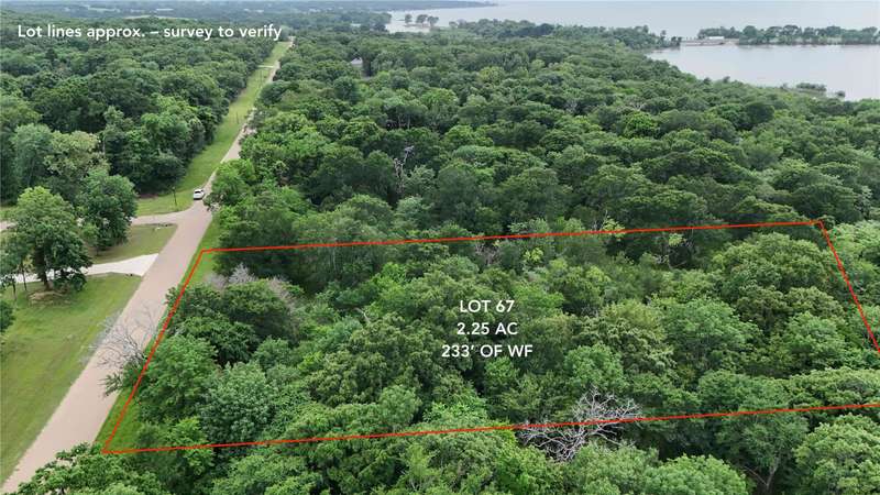 Stunning 2.25-acre lot with approximately 233 feet of platted water frontage, surrounded by mature trees and tucked into the scenic Oakmont community. Enjoy the serenity of nature alongside community perks like a pavilion, fire pit, and picnic area. Underground utilities and high-speed internet are available. Restricted to site-built homes with at least 1,800 sq ft HVAC living space and an attached 2-car garage. Guest homes allowed with Architectural Committee approval and similar exterior design. Setbacks: 75' front, 20' side, and 25' rear. Fences allowed with committee approval. Must comply with Mabank building codes; some lots may require variances.