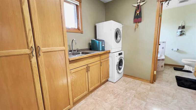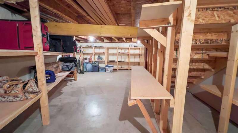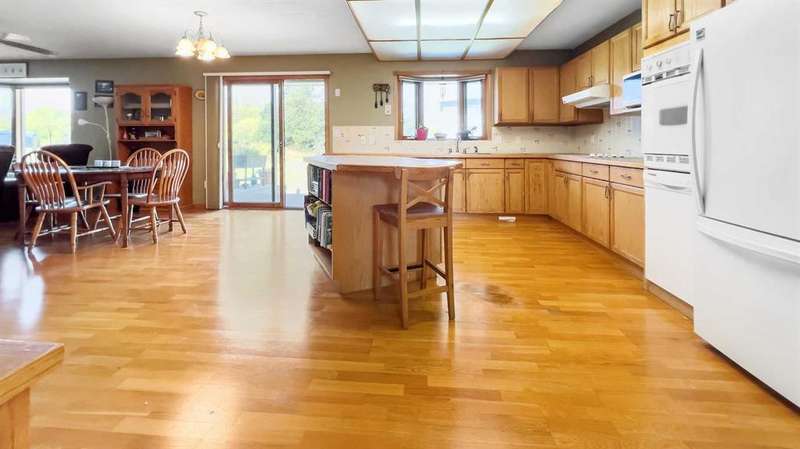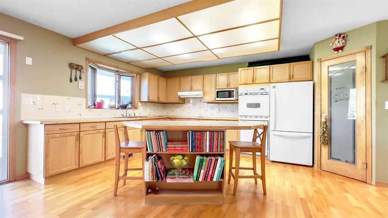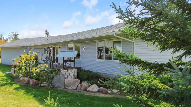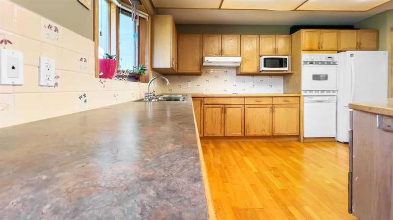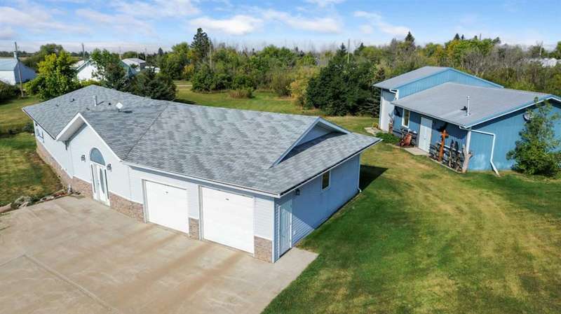 Located in the quiet community of Fleet, ideally situated between Castor and Coronation, this spacious family bungalow offers comfort, storage, and room to grow. Set on 0.59 of an acre, the property features a private yard with mature shrubs and trees, providing plenty of outdoor space for children, gardening, and RV parking. The 1,957 sq ft home is designed with family living in mind, offering 5 bedrooms and 3 bathrooms. The main floor includes a bright, open kitchen with oak cabinetry, a corner pantry, an eat-in island, and a dining area with patio doors providing access the north-facing deck. The living room features a gas fireplace and built-ins perfect for cozy evenings inside. Three main floor bedrooms include a generous sized primary suite with a walk-in closet and ensuite, as well as a second full bathroom with a soaker tub and main floor laundry. Another standout feature of the main level is the oversized entry connecting the home to the double attached heated garage — a versatile space with potential to add lockers, shelving, or a full mudroom system to suit an active family’s lifestyle. The finished ICF basement adds two more bedrooms — one with its own walk-in closet — a large family room, a cold room under the porch, a utility room, and the home’s third bathroom. The property is serviced with 100-amp power, a well and a sewer system with alarm for the holding tanks. Adding further value, a 30' × 50' shop offers incredible functionality. It features a 8' × 12' overhead door with tall ceilings, an overhead heater, a 3-piece bathroom, wood storage, utility rooms, and 100-amp power with water and sewer connections — making it ideal for projects, storage, or hobbies. With its generous square footage, multiple walk-in closets, extensive storage, large shop, and a private yard, this property is an excellent opportunity for families seeking a quiet rural lifestyle with convenient access to amenities in both Castor and Coronation.