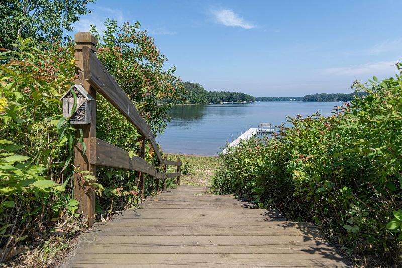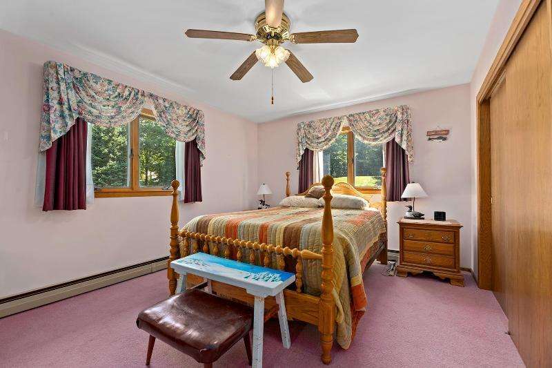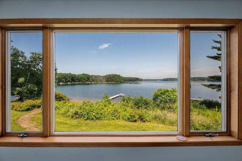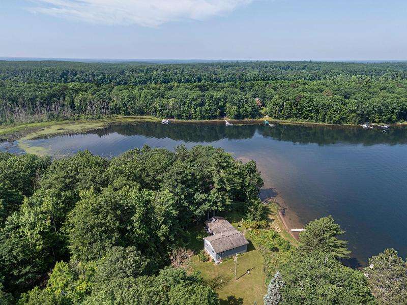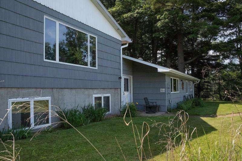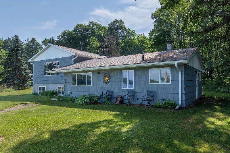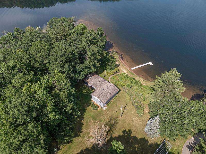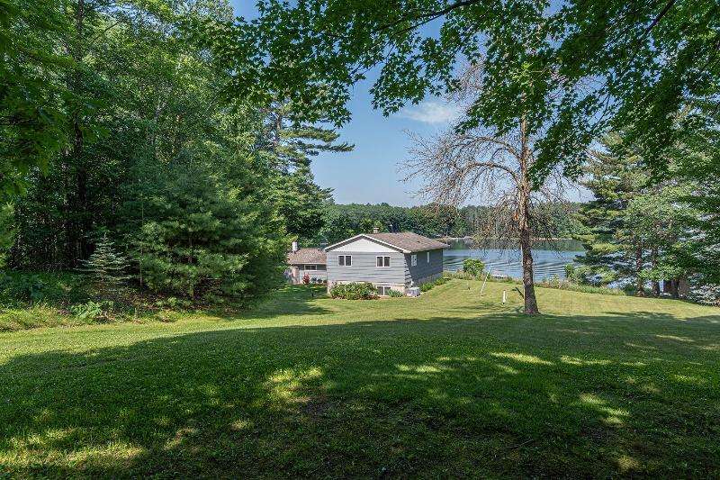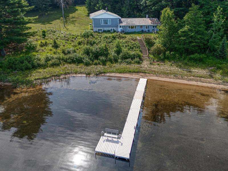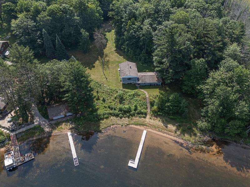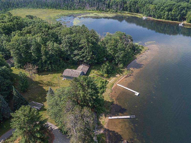 A remarkable find! 21 acres with 1200+/- ft of frontage on Squash Lake, a 398 acre, 74' deep clear water lake with a 4 bd, 3 bath home and 2 garages. . Located west of Rhinelander, Squash Lake is a premier lake known for it's exceptional water clarity with secchi readings of over 20 ft . The original section of the house has 2 bedrooms, 1 bath, utility room, kitchen and spacious dining room with a large lakeside window. The addition has two suites with private bathrooms and a living room with an exceptional view of the lake and a full basement with a rec room.. This property has western exposure, a sand beach and a moderate slope to the water. The land is a mix of beautiful wooded land with mature hardwoods and towering pine, a meadow and some unique wetlands. The hillside is covered with native plants which was part of a shoreland restoration project. A new septic system is being installed in October