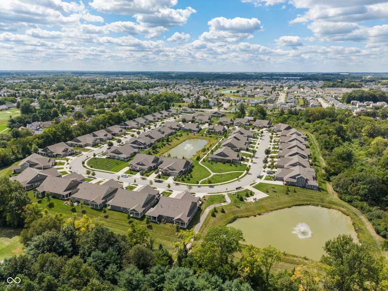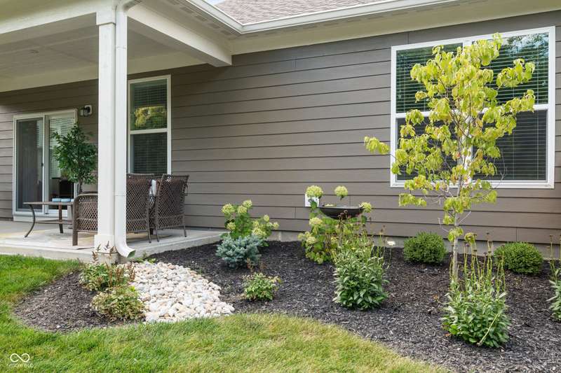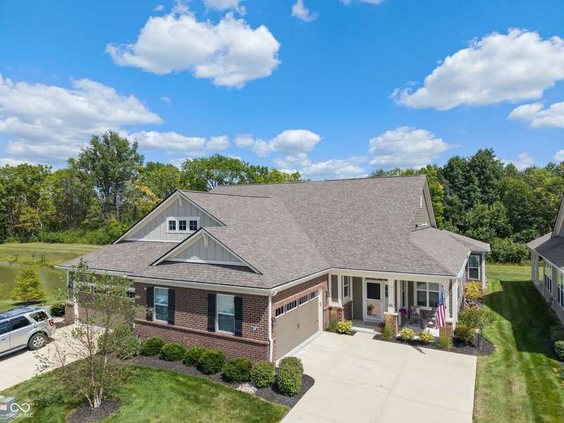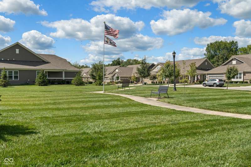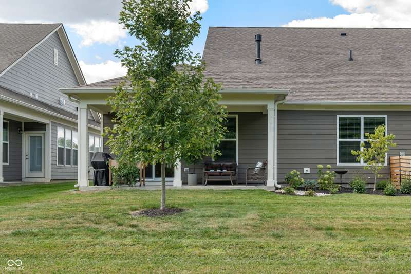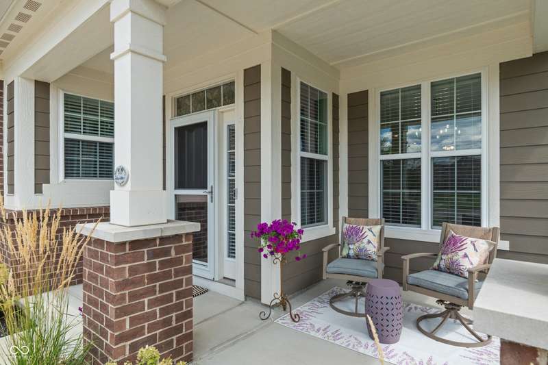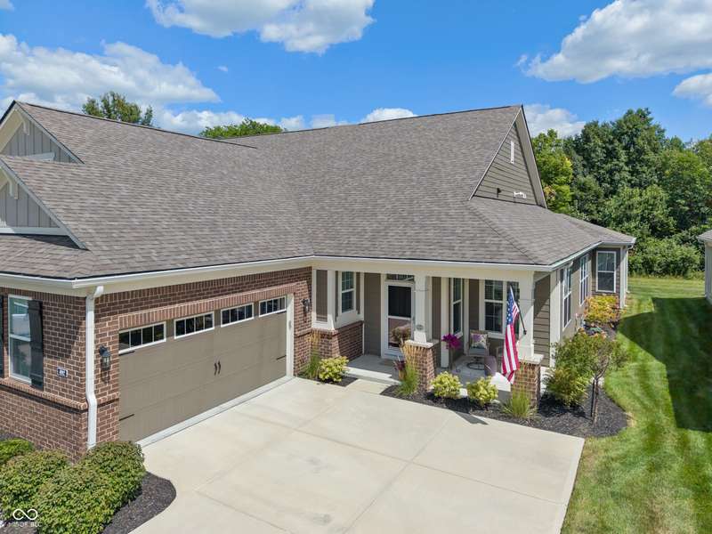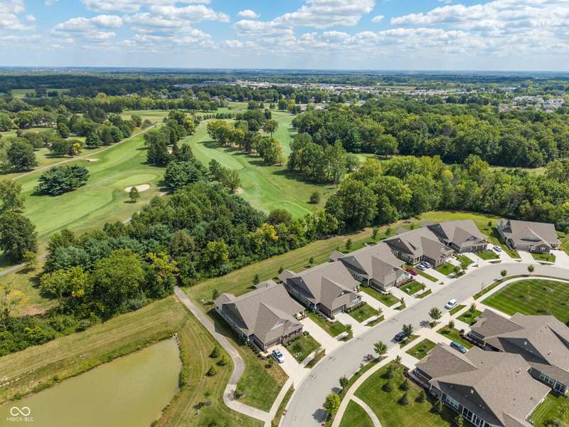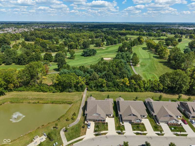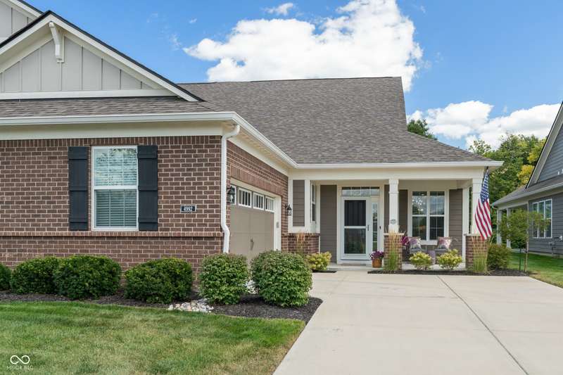 A whole lotta golf and very little work! If this sounds attractive to you, look no further than this pristine 2bd/2ba villa backing up to the 18th tee of Pebble Brook Golf Course! This spacious ranch style villa is 4 years young & teeming w/ modern updates galore! Enjoy 9' ceilings, crown molding LVP floors throughout. Gourmet kitchen features 42'' cabinets, large center island w/ farm sink, quartz countertops, tile backsplash, huge pantry & ss appliances. Secluded Owner's Suite boasts tray ceiling, comfort height dual vanities, walk-in shower, huge walk-in closet with custom organizers & clever laundry access. Dedicated office space along w/ peaceful flexroom add creativity to your living space. Covered back porch overlooks tree-lined private backyard. Scratch your golf itch by hopping on the golf cart trail nestled next to your backyard! Deep 2 car garage & irrigation system, next to impossible to find at this price. Leave your mower & snowblower; rest easy & savor this low maintenance lifestyle. Book showing, a tee time and move right in!