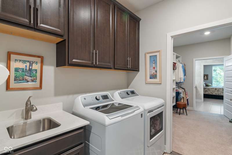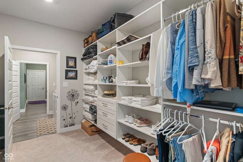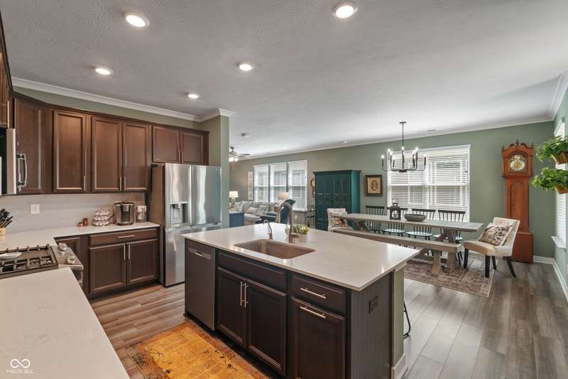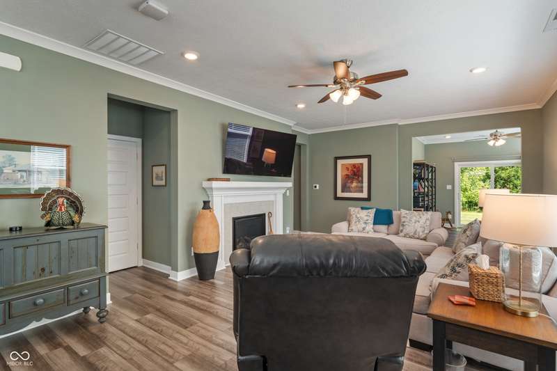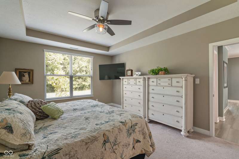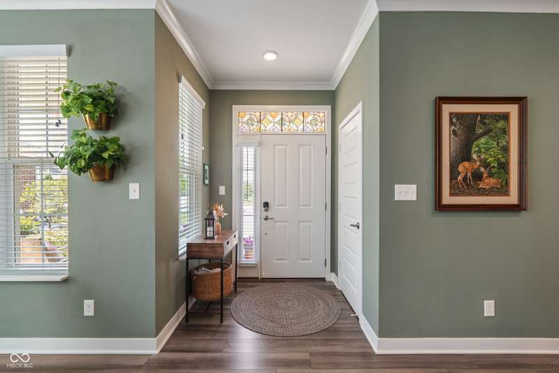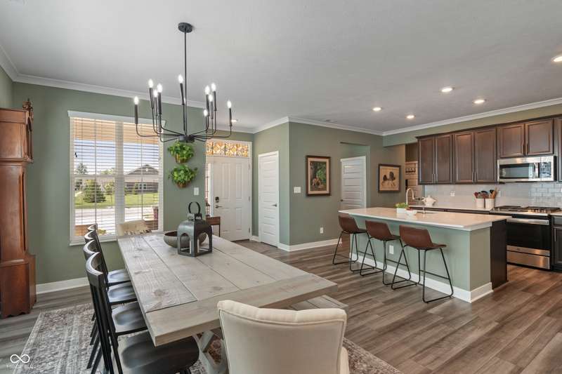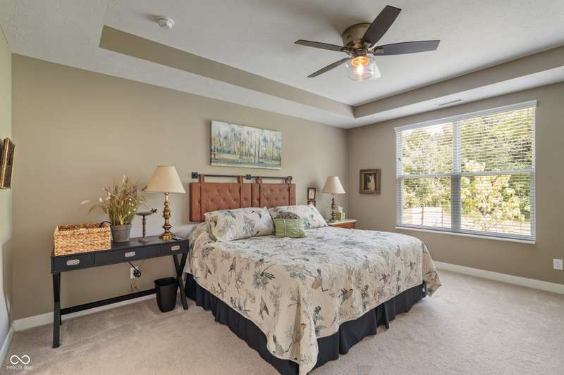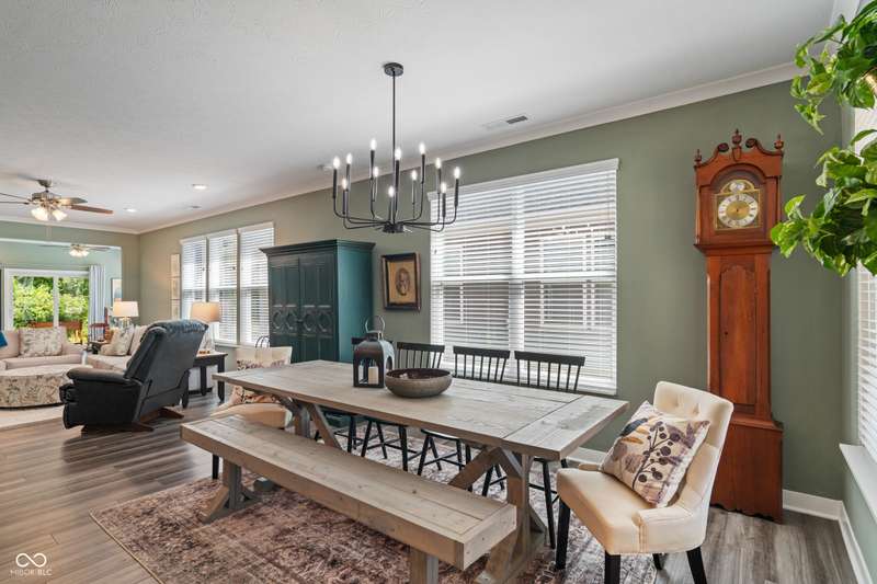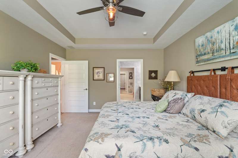 A whole lotta golf and very little work! If this sounds attractive to you, look no further than this pristine 2bd/2ba villa backing up to the 18th tee of Pebble Brook Golf Course! This spacious ranch style villa is 4 years young & teeming w/ modern updates galore! Enjoy 9' ceilings, crown molding LVP floors throughout. Gourmet kitchen features 42'' cabinets, large center island w/ farm sink, quartz countertops, tile backsplash, huge pantry & ss appliances. Secluded Owner's Suite boasts tray ceiling, comfort height dual vanities, walk-in shower, huge walk-in closet with custom organizers & clever laundry access. Dedicated office space along w/ peaceful flexroom add creativity to your living space. Covered back porch overlooks tree-lined private backyard. Scratch your golf itch by hopping on the golf cart trail nestled next to your backyard! Deep 2 car garage & irrigation system, next to impossible to find at this price. Leave your mower & snowblower; rest easy & savor this low maintenance lifestyle. Book showing, a tee time and move right in!