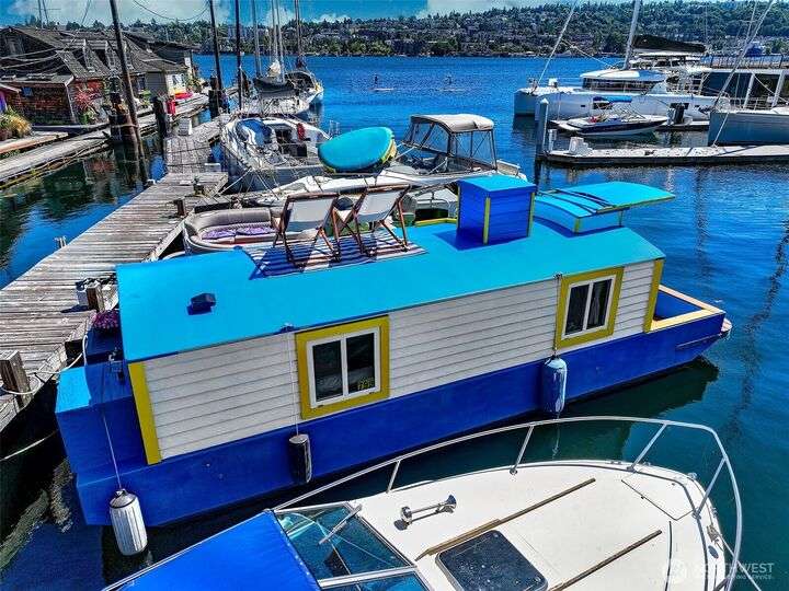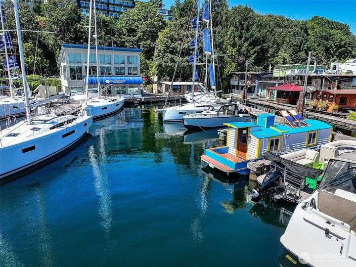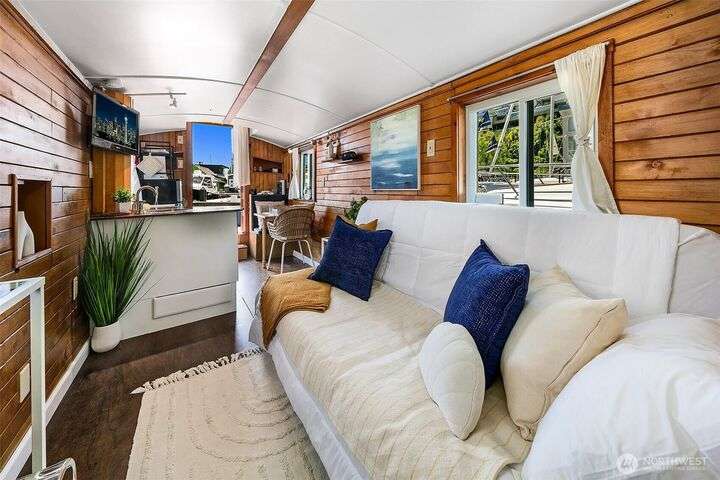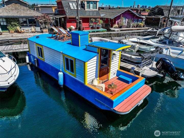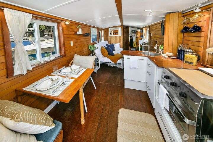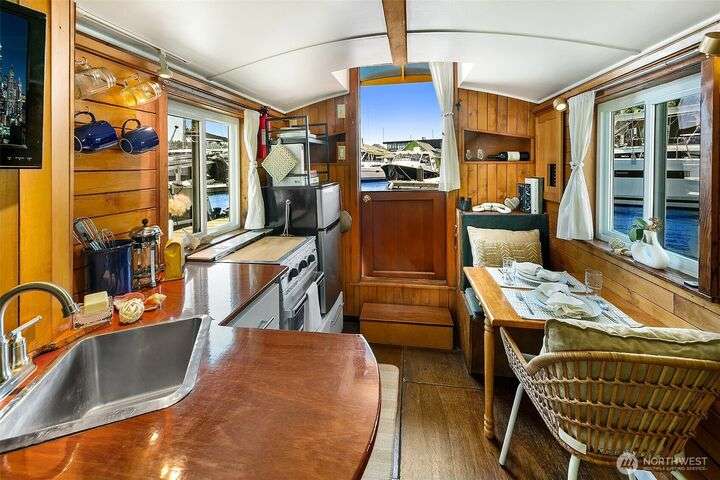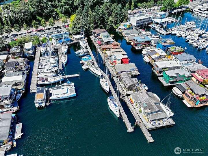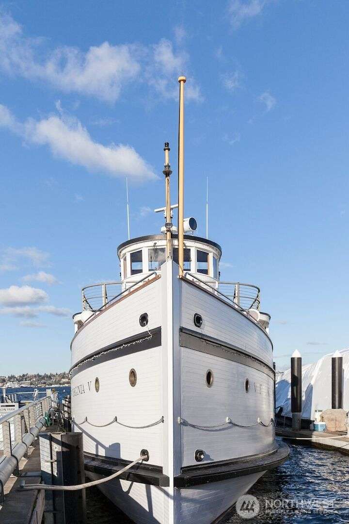Afloat on Lake Union aboard the S.S. Guppy, begin mornings on the aft deck with coffee and the water’s gentle lap. Ahead, the skyline shimmers as a storied floating home community crowned by the famed Sleepless in Seattle sets the stage for your next story. Crafted to last by master boatbuilder Brad Rice: Meranti Hydrotek hull, arched ceiling, hardwood sole. Moored in its friendly, gated marina for 25 years, S.S. Guppy offers rare solace minutes from the SLU tech hub. Paddle to Gas Works Park or cycle the Cheshiahud Loop. Evenings bring painted skies, drifting water & the quiet sway that trades square footage for soul. Zone 25 parking. Slip $585/mo + $500 fulltime liveaboard.