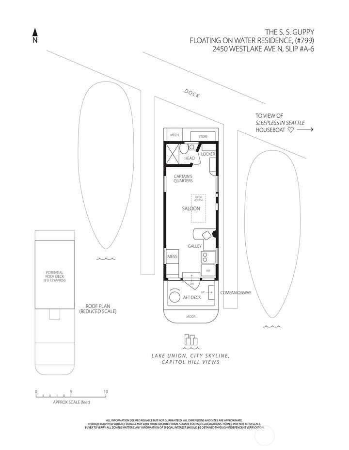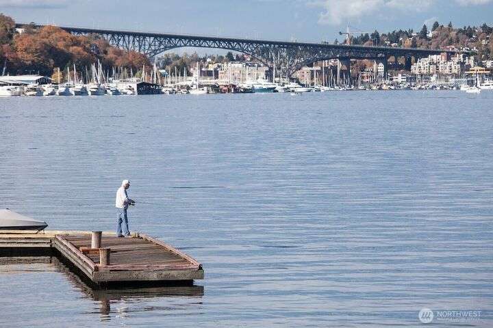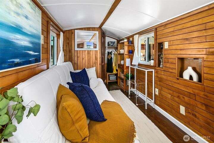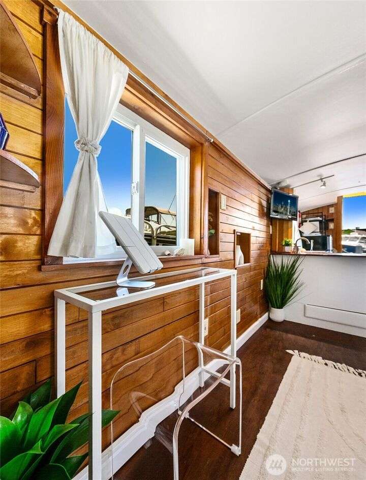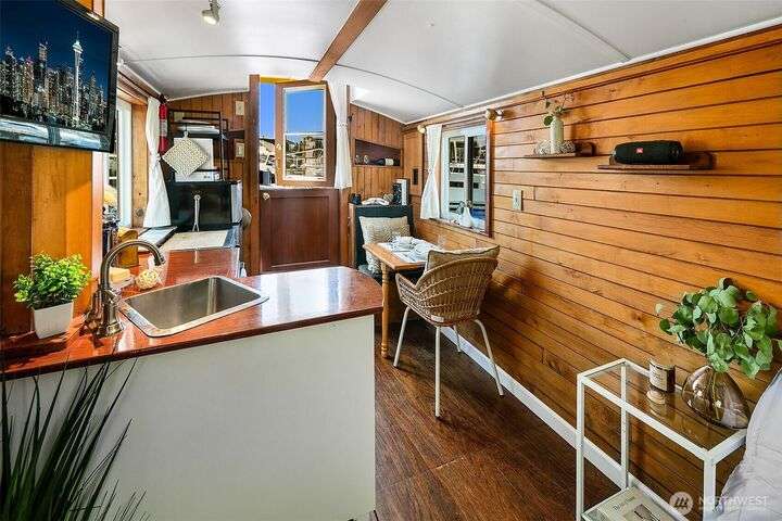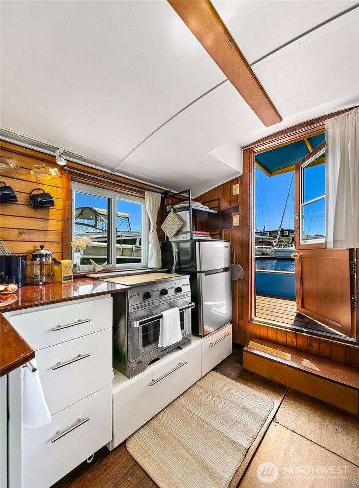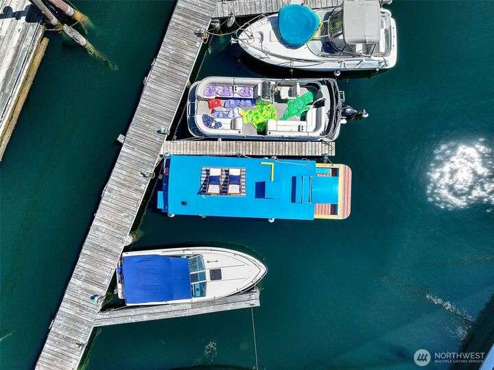 Afloat on Lake Union aboard the S.S. Guppy, begin mornings on the aft deck with coffee and the water’s gentle lap. Ahead, the skyline shimmers as a storied floating home community crowned by the famed Sleepless in Seattle sets the stage for your next story. Crafted to last by master boatbuilder Brad Rice: Meranti Hydrotek hull, arched ceiling, hardwood sole. Moored in its friendly, gated marina for 25 years, S.S. Guppy offers rare solace minutes from the SLU tech hub. Paddle to Gas Works Park or cycle the Cheshiahud Loop. Evenings bring painted skies, drifting water & the quiet sway that trades square footage for soul. Zone 25 parking. Slip $585/mo + $500 fulltime liveaboard.