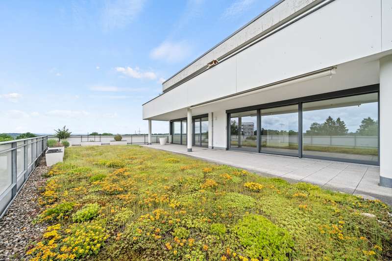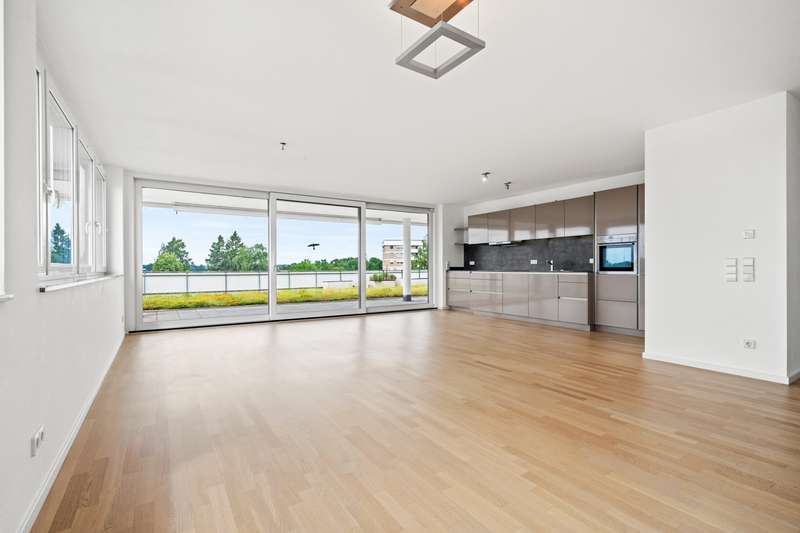 Experience comfortable living at the highest level in this modern penthouse apartment, located on the 4th floor of a new apartment building in the attractive Talfeld district of Biberach. On around 137 square meters of living space, you can expect a light-flooded home that impresses with high-quality materials and a well thought-out room layout. Features & highlights: - Modernity meets living comfort - Fine oak parquet flooring in all rooms gives the apartment a warm and stylish atmosphere. - Spacious, light-flooded living areas with triple-glazed soundproof windows and electric shutters ensure peace and comfort. - Floor-to-ceiling patio windows with direct access to the terrace from all three rooms harmoniously combine the interior and exterior areas. - Underfloor heating in all rooms guarantees pleasant temperatures all year round. Living with exclusive extras: - Bright living room with living/dining area, separate storage room and a fully equipped branded fitted kitchen - ideal for discerning residents (branded fitted kitchen is included in the basic rent). - High-quality, barrier-free daylight bathroom with bathtub and glazed shower cubicle as well as a separate guest WC with space for washing machine and dryer. - Covered roof terrace of approx. 120 m², equipped with retractable sun awning and landscaped green area - a real highlight for relaxing hours with a unique distant view. - Intercom system with video function provides additional security and convenience. Storage space & communal facilities: - Own lockable cellar room with power connection and window. - Shared laundry room with its own connection. - Communal drying room, bicycle room and garbage room. - Convenient access to the apartment, cellar and underground garage via a modern elevator. Exclusive parking facilities: - A private underground parking space and a private outdoor parking space directly in front of the residential complex are included in the basic rent. This penthouse apartment not only offers the highest level of living comfort, but also numerous extras that make everyday life easier and more enjoyable. Enjoy the unique view from your roof terrace, benefit from the high-quality fixtures and fittings and take advantage of the convenient infrastructure - your new oasis of well-being in Biberach-Talfeld! The apartment is located in a quiet, green area on the outskirts of the village, yet offers short distances to all important amenities: Shopping facilities, kindergarten, playground and a bus stop are all within a radius of just 350 meters. This means you can enjoy the benefits of living close to nature while still being well connected to city life. You can easily reach the old town with its market square and diverse shopping facilities in around 2 km - on foot, by bike or by public transport. The tenant is exempt from paying a brokerage fee.