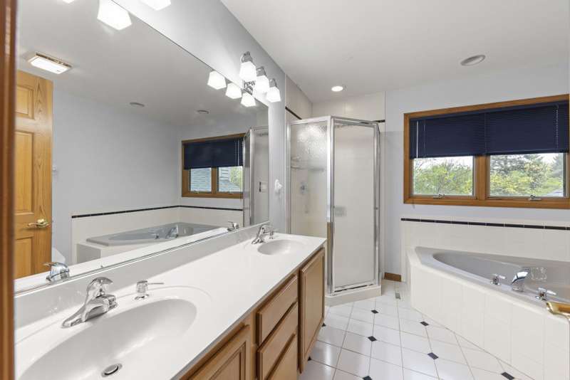Beautifully Updated Home in a Serene Court Setting. This stunning home offers modern comfort and style, featuring nearly all new appliances. The heart of the home-its kitchen-has had some renovations in 2024 with brand-new painted cabinets, a stylish backsplash, and high-quality appliances, including a 2024 range hood, a 2023 dishwasher, a 2022 refrigerator, and a 2021 oven. Upstairs and stairway flooring were just installed in 2025, the 1st and 2nd floor of the home has been freshly repainted, creating a bright and welcoming atmosphere. Master suite offers an adjoining sitting room. Enjoy movie nights in the newly built home theater (2024) or entertain outdoors in your very large backyard, mature trees for nice shaded evenings on your elegant brick paver patio (2022). The home also features a first floor full bathroom, some new Pella windows, (family room and a bedroom upstairs) enhancing both energy efficiency and curb appeal. Located on a peaceful and quiet court, this home offers the perfect blend of tranquility and convenience. Additional highlight: Brand-new washer (2025), 220V EV charger, sump pump 2024 w/battery backup. 2 bathrooms upstairs just had brand new glazed tubs, tile, countertops and brand-new toilets installed.