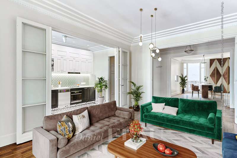Boulevard de Courcelles. This bright and peaceful 174 sqm apartment is on the 4th floor of a superb Art Deco building with a lift located in the immediate vicinity of leafy Parc Monceau, the shops and the transport networks. Featuring 3.10 metre high ceilings, it includes a double living/reception room, a dining room, a kitchen, three bedrooms, a bathroom/wc, a shower room/wc and two dressing rooms. The dining room could create a 4th bedroom if required. With a 25 sqm cellar. Refurbishment is required to exploit the full potential.