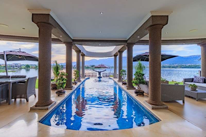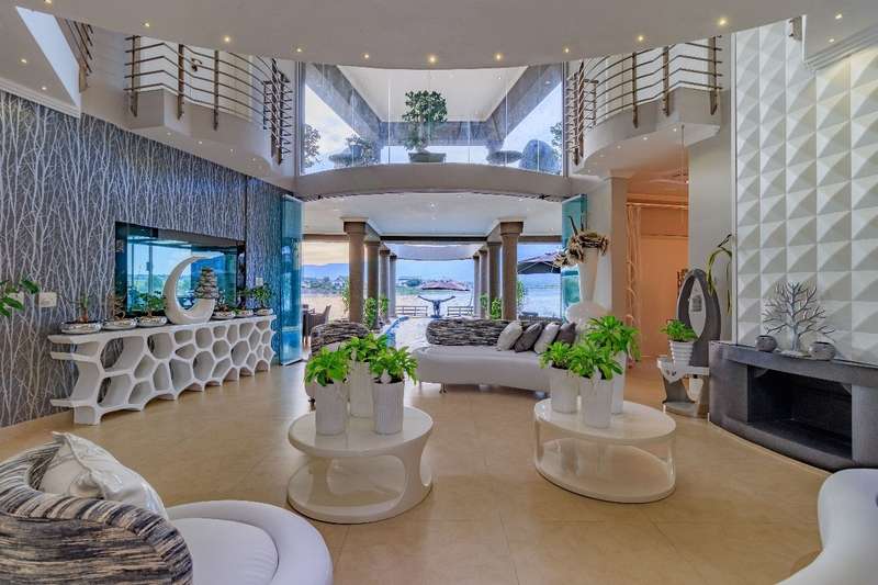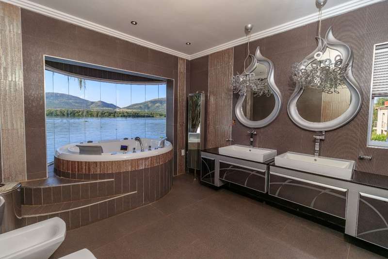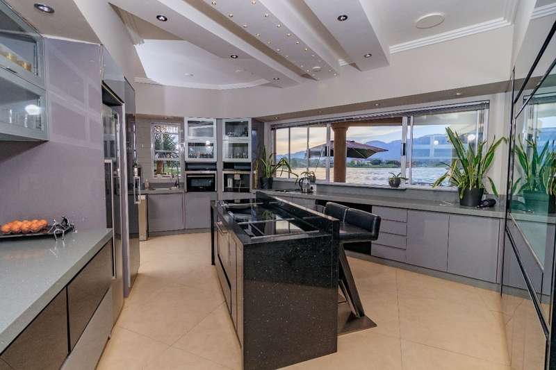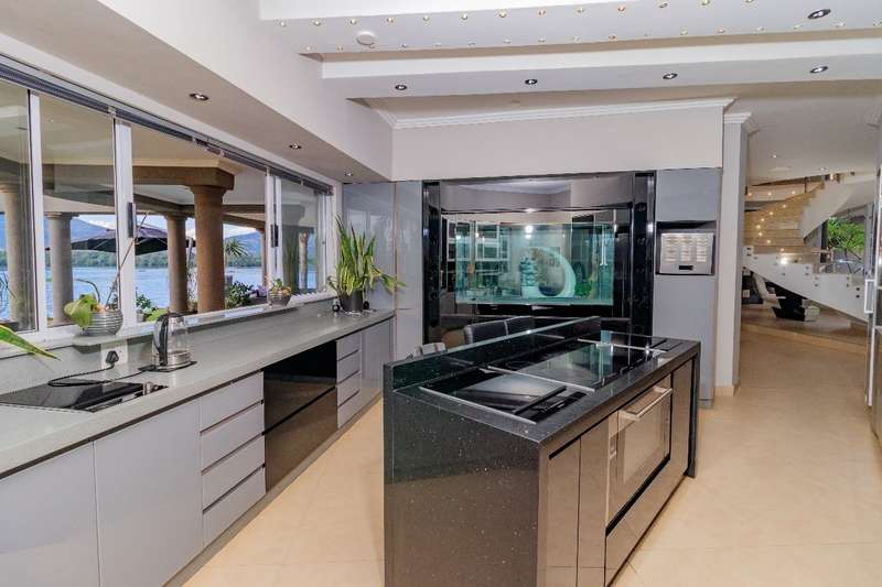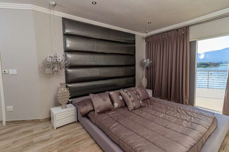 Positioned on the banks of Hartbeespoort Dam, this entertainer's paradise, offers a 270-degree water frontage with uninterrupted views, of the Hartbeespoort dam and the Magalies Mountains. Featuring a wrap-around composite jetty and deck, there's ample parking for all your "fun in the sun" toys! Property Details: Bedrooms: 5 spacious and oversized, each with ensuite bathrooms Bathrooms: 5.5 luxurious, modern bathrooms Garage: 4-car garage with additional parking for 8 cars Cottage: Includes kitchen and bathroom Total Area: 930m² under roof on a 1003m² stand Flatlet: 1 private flatlet/domestic quarters Features: Living Areas: 2 lounges, 1 dining area, Family TV room Outdoor Amenities: Sparkling waterfront pool, Lifestyle entertainment area, Balcony, patio, deck, Landscaped garden Luxury Additions: Spa bath, Gym, Built-in braai, Fireplace, Jetty Berth Interior Highlights: Top of the line chef’s kitchen, Seamless combined aquarium screening, the kitchen from the main lounge, Home office, Cinema room, Study, Pantry, Guest toilet, Entrance hall, Under floor heating Technology: Line Control 4 automates all lighting throughout the home, Automated sprinkler system, Air conditioning, Security and CCTV system Accessibility: Wheelchair friendly Extras: Staff quarters, Laundry room, Storage space, Electric fence, Alarm and security gate, Intercom, Irrigation system, Paving, Pets allowed Why You Should Buy: Prime Location: Nestled on the banks of Hartbeespoort Dam, with breathtaking views of the dam and Magalies Mountains. Spacious & Comfortable: Five oversized bedrooms, each with an ensuite, offering ultimate comfort and luxury. Work & Play: Equipped with a home office, gym, cinema room, and more, providing ample space for work and leisure. Private Retreat: Includes a private flatlet and domestic quarters. Entertainment Haven: A sparkling waterfront pool, and lifestyle entertainment area make this an entertainer’s dream. Convenient Boat Access: 220m² of private jetty and a garage that opens onto the slipway for direct boat launching onto Hartbeespoort Dam. Ample Parking: Four garages plus additional parking for at least eight more cars. Stunning Views: Enjoy stunning views from every angle of this home. Unique Appeal: Landscaped gardens and an impressive design make this home one of a kind in the Westlake Country and Safari Estate. This beautiful, modern, architecturally designed home, on the waterfront of Hartbeespoort Dam is ready for a special owner. There's so much more to this property than words can describe, and to top it all off, FURNITURE IS INCLUDED! ? Call Today! ? View by appointment only! Qualified buyers only! Book your exclusive viewing and immerse yourself in the lifestyle you deserve. Live the life you've always dreamed of in this architectural masterpiece!