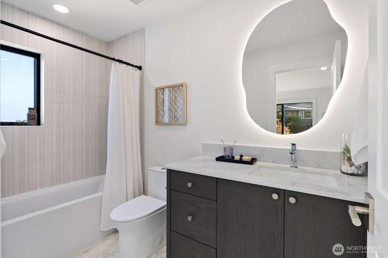 This extraordinary Magnolia residence blends timeless luxury with impeccable craftsmanship. Light-filled living spaces and designer finishes create effortless elegance. The gourmet kitchen with a custom island flows into the inviting great room and covered deck for year-round enjoyment. Upstairs, the lavish primary suite offers a spa-like bath and private balcony, while two additional bedrooms each feature their own en-suites. The lower level includes a rec room with wet bar, extra bedrooms, and access to the backyard. Detached garage off alley. A true NW Contemporary masterpiece. Close to Discovery Park, shops, dining, and more—Magnolia living at its finest.