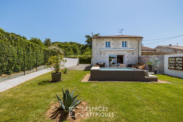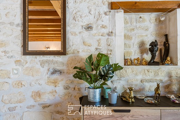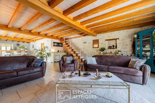 Located between Saintes and Royan, in the heart of a peaceful rural setting, this old stone farmhouse has undergone a complete renovation. Offering approximately 160 m2 of living space, it elegantly combines the character of the past with the benefits of a carefully designed contemporary design.