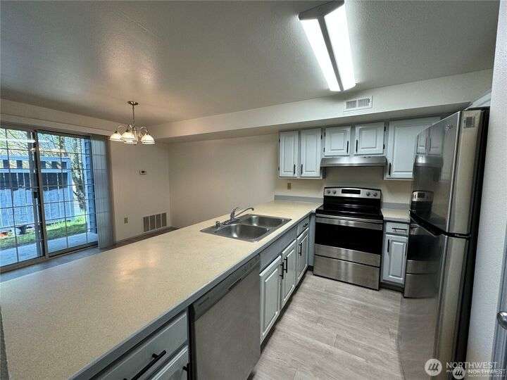 Fantastic 2 bed/1.5 bath condo with nearly 1200 SQ FT in Puyallup! The wide open, spacious living room welcomes you into the kitchen and breakfast nook with slider to a private patio. 2 nice sized bedrooms and a huge main bath with double vanities. Washer and dryer in unit! Lots of storage! Tile and laminate flooring throughout! One assigned parking space and plenty of guest parking. Perfect location just minutes away from South Hill Mall, Hwy 512 access, shopping, parks, and restaurants!