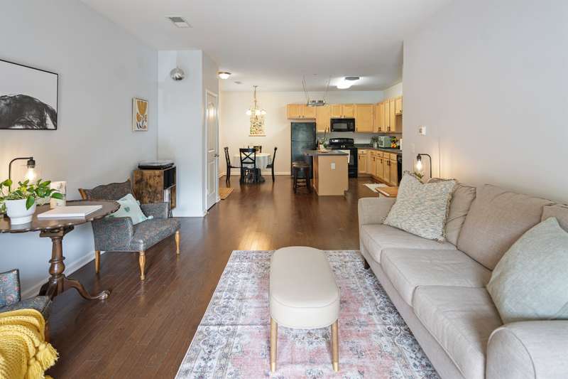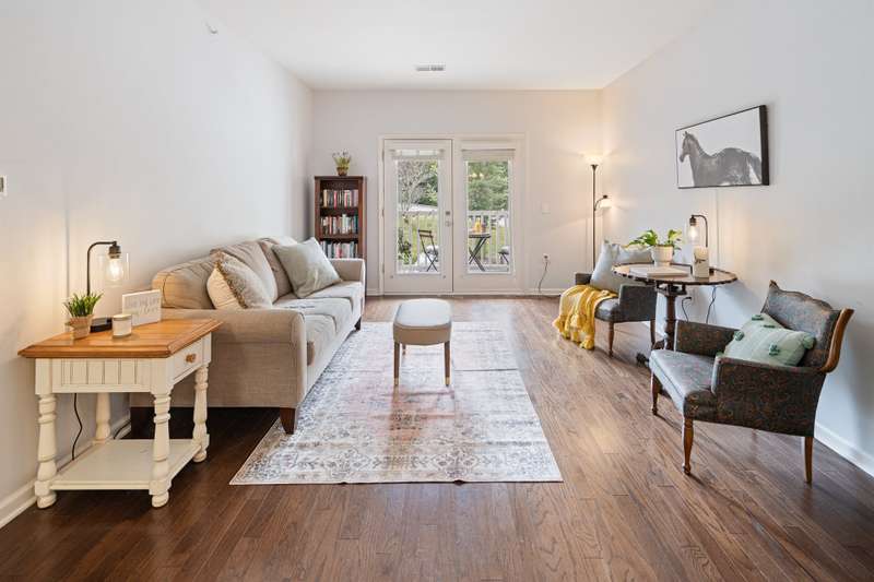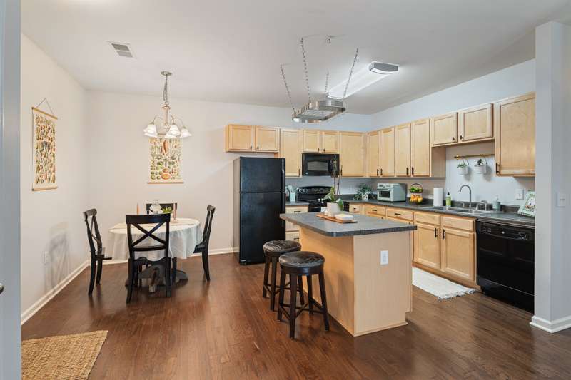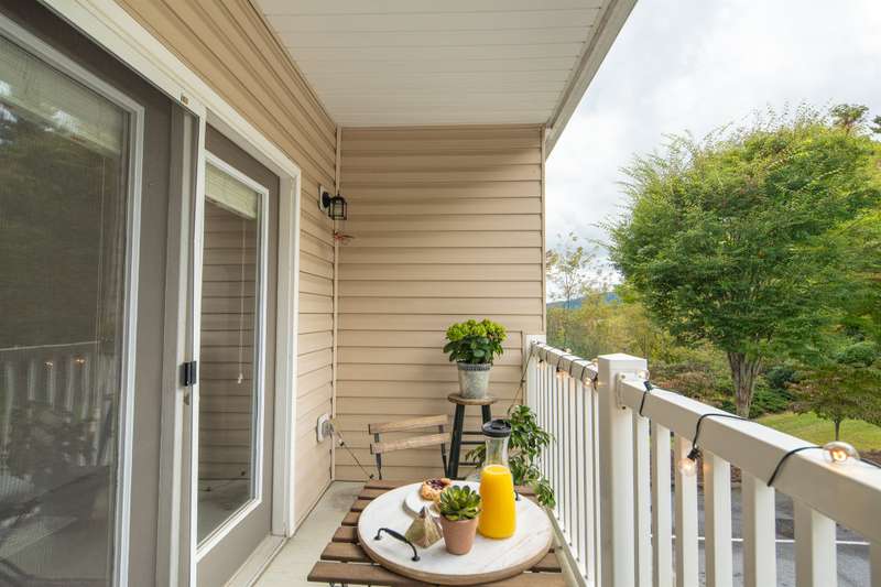 BEAUTIFUL, CONVENIENT, QUIET! Highly desirable 2 bed/2 bath condo in upscale Riverstone community just 5 minutes to ASU and Downtown Boone! Incredible location near Brookshire Park and Ted Mackorell Soccer Complex with easy access to AppalCART. This lovingly maintained second floor end unit offers a modern open floor plan boasting wood floors throughout the gorgeous kitchen with loads of cabinets, distinct dining area, large living room with natural light and access to a relaxing front porch, and hallway with laundry closet. There is a spacious oversized primary bedroom with ensuite bathroom (including garden tub) and walk-in closet, second bedroom with lovely winter mountain views, and a large full bathroom which can be accessed from both the second bedroom and hallway. Recently cleaned carpets in the bedrooms and durable vinyl floors in the bathrooms. This fantastic condo offers a high end feel, dog park, ample parking lot, and city water & sewer. Long term rentals allowed for those interested in income. Ready to make your move? This one will go quick!