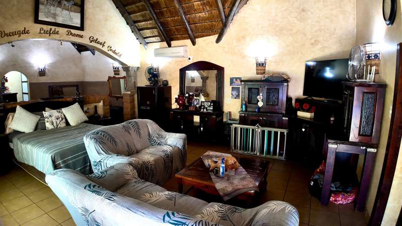 Exceptional 6Ha Investment Property with Rental Income. Located conveniently on the tar road just outside Thabazimbi town, this 6-hectare income-generating property offers a unique investment opportunity with established rental income exceeding R70,000 per month. Featuring a variety of dwellings including a luxurious main house, several rental homes and flats (prepaid power) – all set in the bushveld. Main House & Entertainment Area Thatched roof home with: Open-plan kitchen, lounge, and dining room 2 spacious bedrooms with walk-in wardrobes 2 en-suite bathrooms and separate guest toilet Large entertainment lapa with: Bar, built-in braai, kitchen, and guest toilet Sparkling swimming pool and jungle gym for kids 6x Carports, open garage Water & Power: Borehole producing 1,000L/hour 2x 10,000L water tanks Eskom power connection Flat 1 (Attached to lapa) 1 Bedroom, walk-in closet, 1 bathroom House 2 – R10,000/month Thatched roof, kitchen, lounge, dining room 3 Bedrooms, 2 bathrooms Double carport House 3 – R9,000/month Thatched roof, kitchen with scullery, lounge 3 Bedrooms, 2 bathrooms Double carport Flat 2 – R7,000/month Tiled roof, kitchen, lounge 2 Bedrooms, 1 bathroom Double carport Flat 3 – R7,000/month Tiled roof, kitchen, lounge 2 Bedrooms, 1 bathroom Double carport House 4 – R9,000/month Zinc roof, kitchen with scullery, lounge, dining 2 Bedrooms, 1 bathroom Stoep with braai, double carport Flat 4 – R5,000/month Thatched roof, kitchen 1 Bedroom with walk-in closet, 1 bathroom Single carport House 5 – R7,000/month Zinc roof, kitchen, lounge 3 Bedrooms, 2 bathrooms Double carport Flat 5 – R6,000/month Zinc roof, kitchen, lounge, dining room 2 Bedrooms, 1 bathroom Double carport House 6 (Newly Built) – R12,000/month Double-storey tiled roof Kitchen with scullery, lounge, dining room Walk-in safe, 3 Bedrooms, 3 Bathrooms Two porches with built-in braai Double carport Uitsonderlike 6Ha beleggings eiendom met huur inkomste. Geleë direk langs die teerpad net buite Thabazimbi, bied hierdie 6-hektare inkomste genererende eiendom 'n unieke beleggings geleentheid met gevestigde hour inkomste van meer as R70,000 per maand. Met 'n verskeidenheid wooneenhede – insluitend 'n luukse hoofhuis, verskeie huise en woonstelle (kaartjie krag) – alles geleë in 'n rustige Bosveld-omgewing. Hoofhuis & Vermaakarea Grasdak huis met: Oopplan kombuis, sitkamer en eetarea 2 ruim slaapkamers met inloopkaste 2 en-suite badkamers en afsonderlike gastetoilet Groot vermaak-lapa met: Kroeg, ingeboude braai, kombuis en gastetoilet Sprankelende swembad en klimraam vir kinders 6x Motorafdakke, oop motorhuis met ekstra stoorspasie Water & Krag Boorgat wat 1,000L per uur lewer 2x 10,000L watertenks Eskom-kragpunt Woonstel 1 (Aangebou aan lapa) 1 Slaapkamer met inloopkas 1 Badkamer Huis 2 – R10,000/maand Grasdak, kombuis, sitkamer en eetkamer 3 Slaapkamers, 2 badkamers Dubbel motorafdak Huis 3 – R9,000/maand Grasdak, kombuis met opwas, sitkamer 3 Slaapkamers, 2 badkamers Dubbel motorafdak Woonstel 2 – R7,000/maand Teëldak, kombuis, sitkamer 2 Slaapkamers, 1 badkamer Dubbel motorafdak Woonstel 3 – R7,000/maand Teëldak, kombuis, sitkamer 2 Slaapkamers, 1 badkamer Dubbel motorafdak Huis 4 – R9,000/maand Sinkdak, kombuis met opwas, sitkamer, eetkamer 2 Slaapkamers, 1 badkamer Stoep met ingeboude braai, dubbel motorafdak Woonstel 4 – R5,000/maand Grasdak, kombuis 1 Slaapkamer met inloopkas, 1 badkamer Enkel motorafdak Huis 5 – R7,000/maand Sinkdak, kombuis, sitkamer 3 Slaapkamers, 2 badkamers Dubbel motorafdak Woonstel 5 – R6,000/maand Sinkdak, kombuis, sitkamer, eetkamer 2 Slaapkamers, 1 badkamer Dubbel motorafdak Huis 6 (Nuut Gebou) – R12,000/maand Dubbelverdieping met teëldak Kombuis met opwas, sitkamer, eetkamer Inloop kluis, 3 slaapkamers, 3 badkamers Twee stoepe met ingeboude braai Dubbel motorafdak