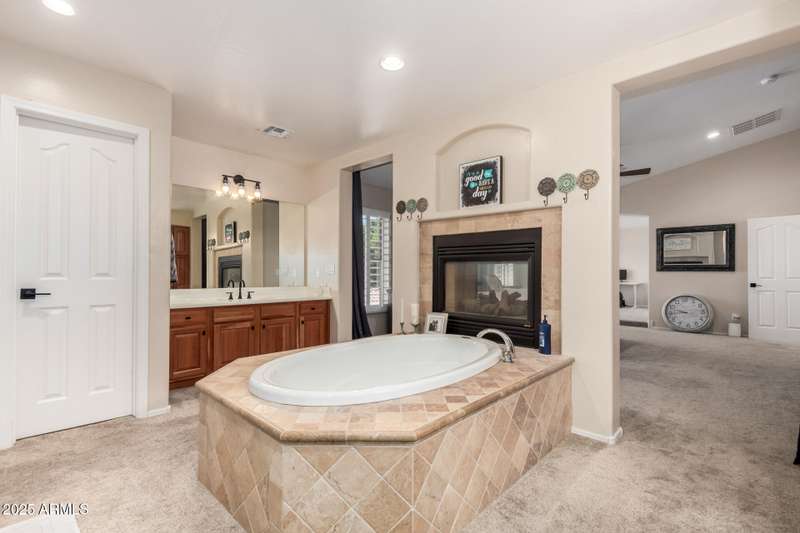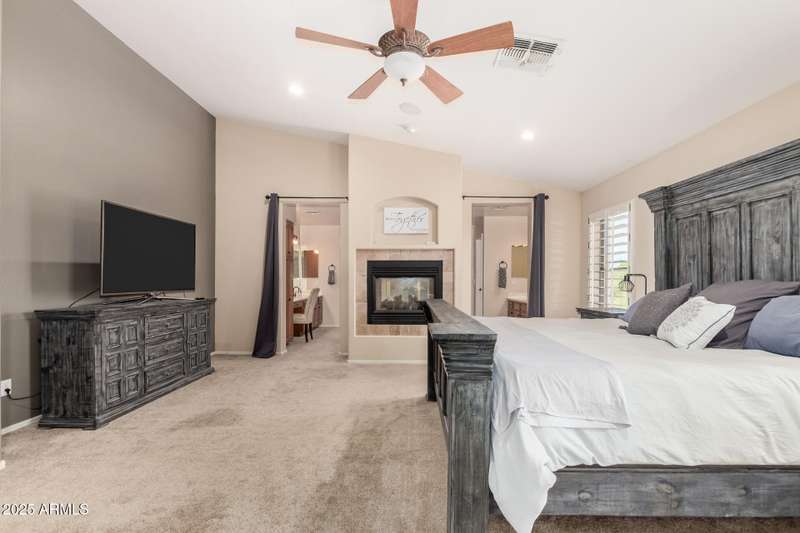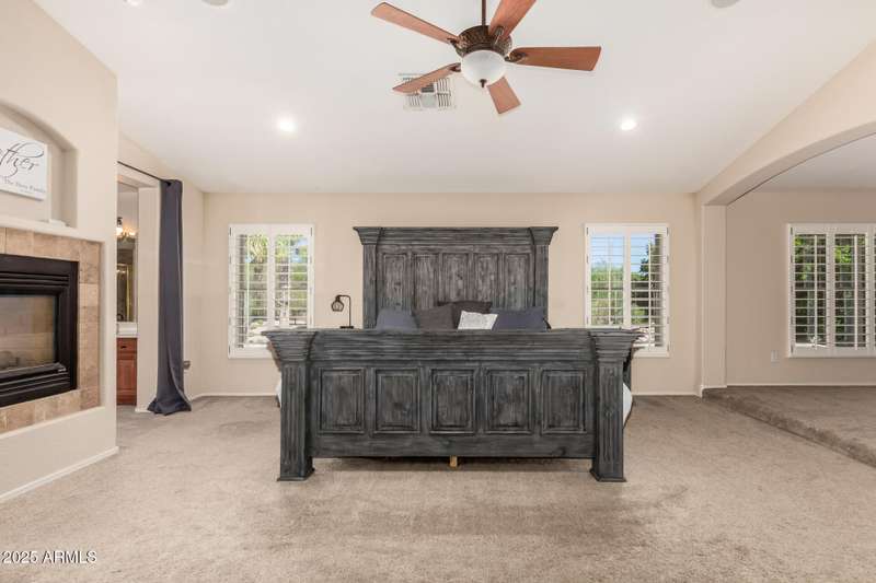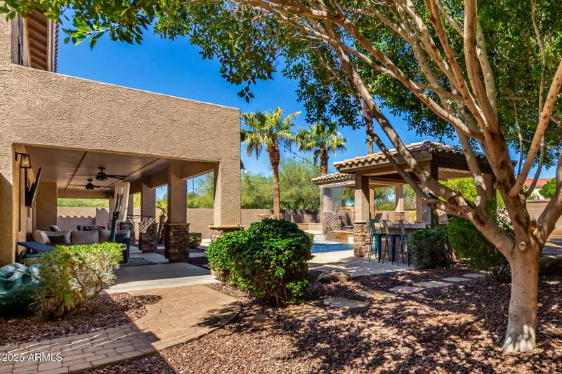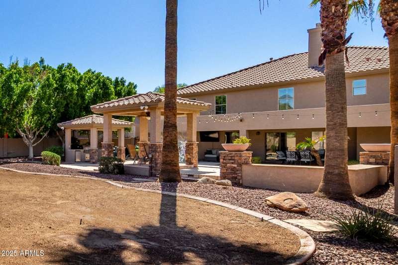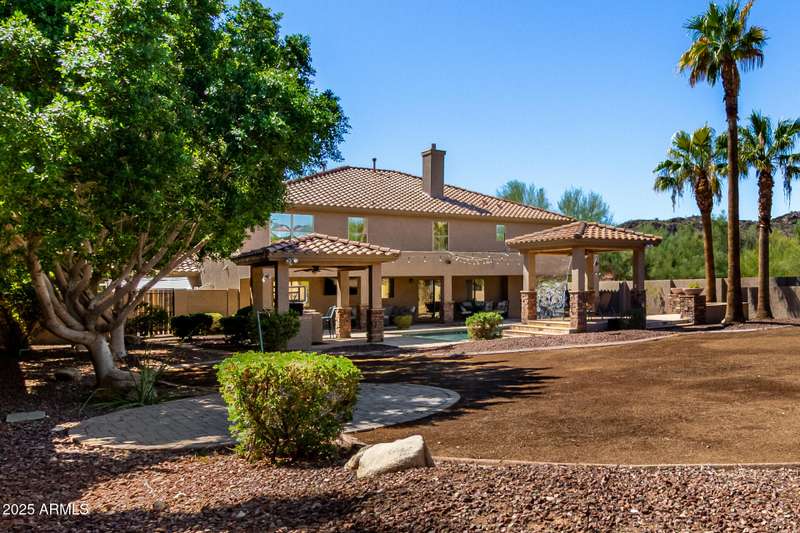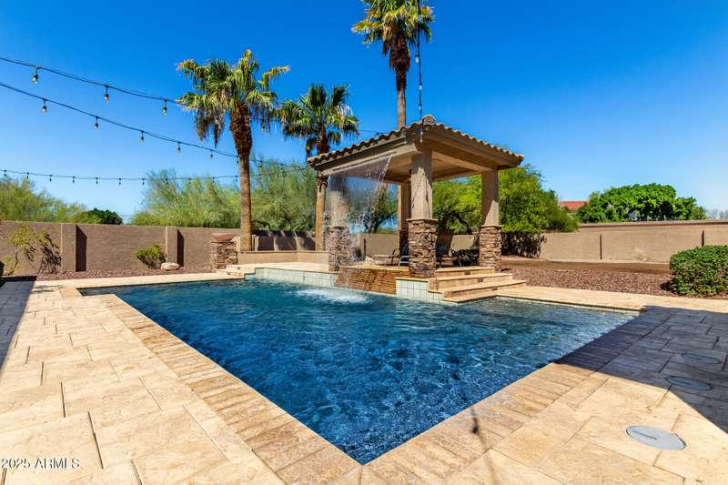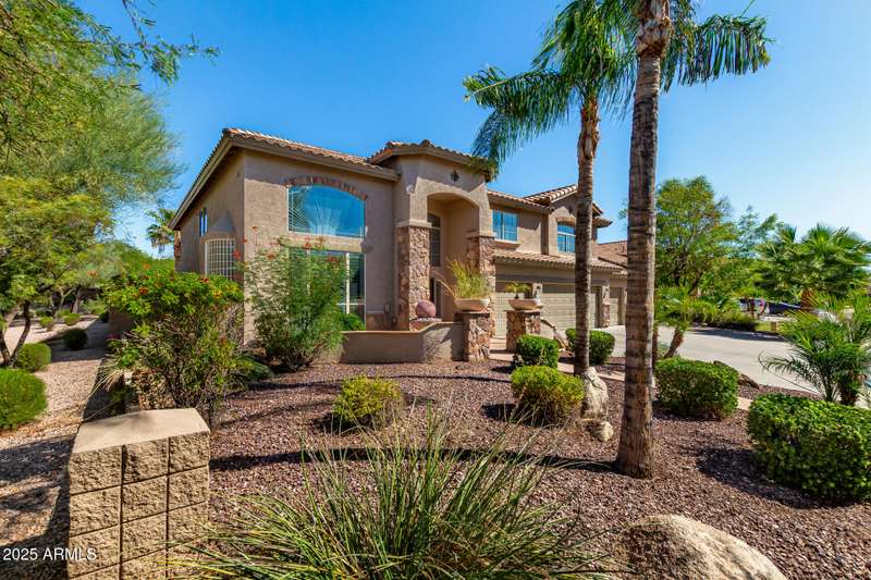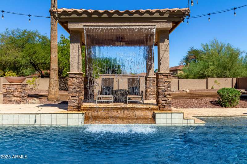 Exquisite 2-story stunner! Greeted by charming stone accents and a 4-car garage, this home immediately impresses. Inside, soaring vaulted ceilings, plantation shutters, and a cozy fireplace set the tone for comfort and elegance. Host unforgettable dinners in the formal dining room, then unwind in the family room pre-wired for surround sound. The chef's kitchen shines with stainless steel appliances, wood cabinetry, granite counters, and a spacious island with breakfast bar. A versatile loft makes the perfect media hub, while the luxurious primary suite boasts a private sitting room, a two-way fireplace, dual vanities, soaking tub, and a dream-worthy walk-in closet. Need more? There's also a den ideal for a home office... Outside is pure paradise with a covered patio, gazebo, built-in BBQ, and a sparkling pool with water features designed for year-round fun. This gem has it all; style, space, and endless ways to enjoy it! Come and experience its allure for yourself!